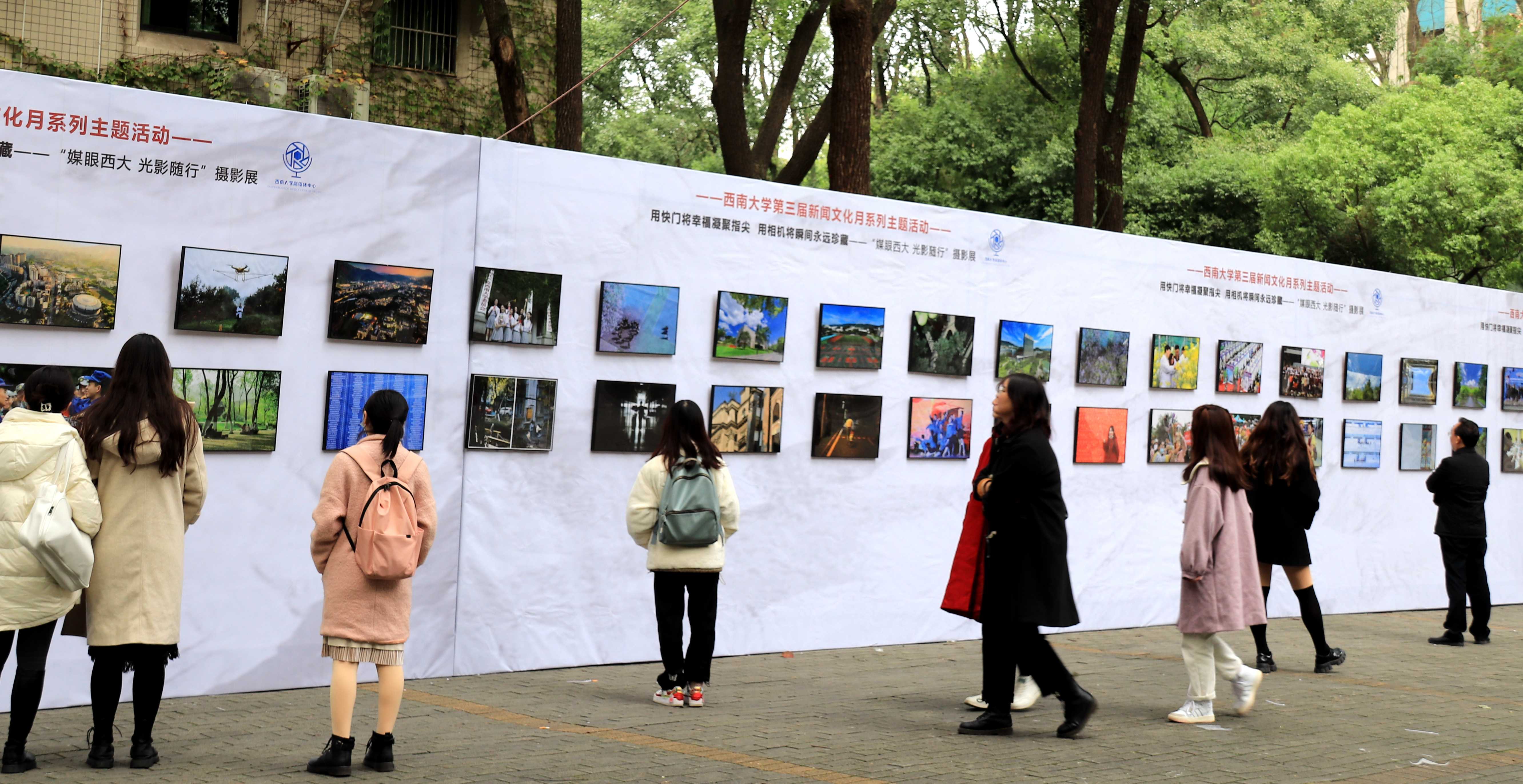 11月8日,第22个中国记者节来临之际,学校党委宣传部、党委网络工作部主办,beat365英国官网融媒体中心承办的“媒眼beat365 光影随行”摄影展在学校田家炳樟树林拉开帷幕,本次影展作为学校第三届新闻文化月系列主题活动之一,旨在发掘影像人才、培养审美意识、丰富校园生活、营造文化氛围,聚焦beat365风光、校园生活,用一次次快门来定格beat365的美好。