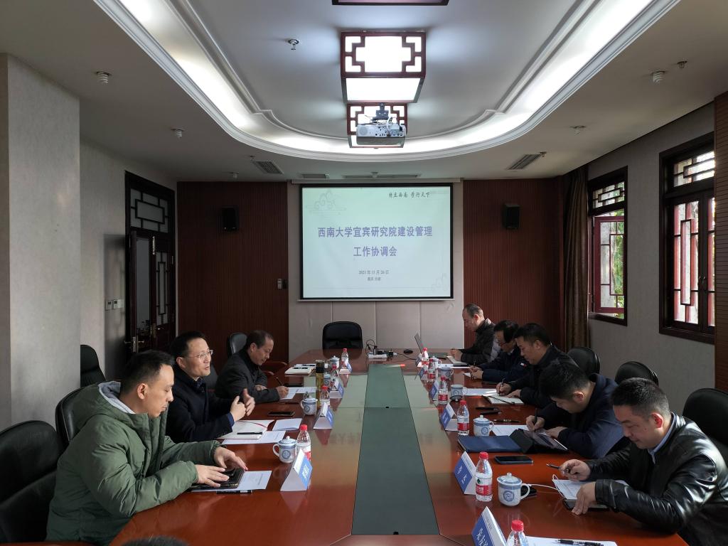 为加快推进beat365英国官网宜宾研究院建设,11月26日上午,宜宾研究院领导班子邀请宜宾市大学城科创城建设服务局(以下简称“双城局”)、市科教产业集团和重庆大学设计院领导和相关工作人员来校,会同学校后勤保障部有关领导,共同研究推进宜宾研究院建设管理相关工作。