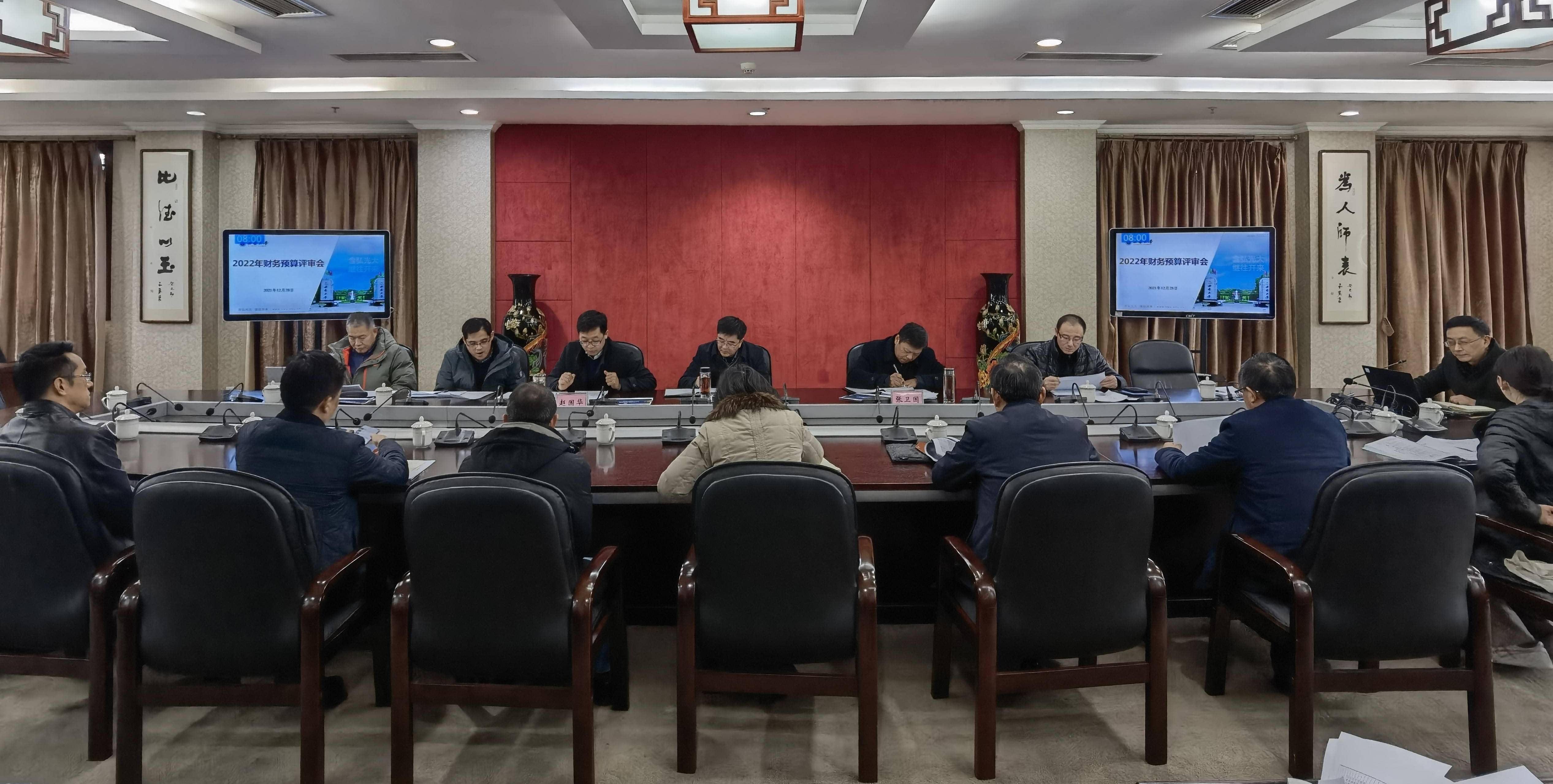 12月28日下午,学校在行署楼三楼五会议室召开2022年财务预算评审会。评审组由学校党委书记李旭锋,校长张卫国,副校长赵国华,党政办公室、发展规划与学科建设部、财务部、审计处等部门负责人组成。组织部(人才办公室)、人力资源部、社会科学处、科学技术处等7个职能部门参加汇报答辩。评审会由赵国华主持。