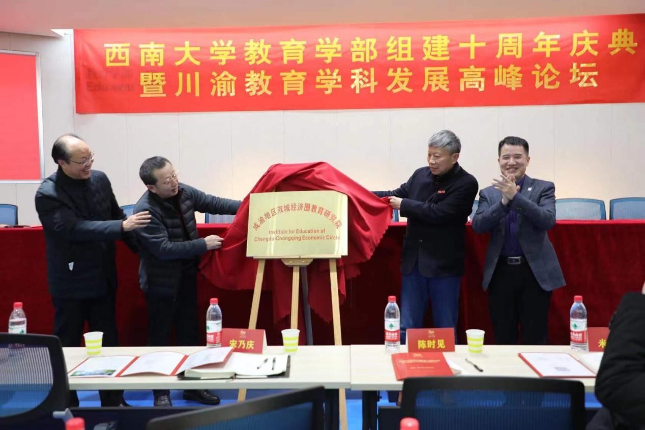 12月26日,教育学部组建十周年庆典暨川渝教育学科发展高峰论坛在田家炳教育书院811报告厅举行,学校副校长陈时见出席活动,教育部西南基础教育课程研究中心主任宋乃庆及300余位来自北京师范大学等高校的专家以及川渝地区的教育学科专家、教研机构专家、学术刊物专家云端受邀参会。成渝地区双城经济圈教育研究院在会上成立。
