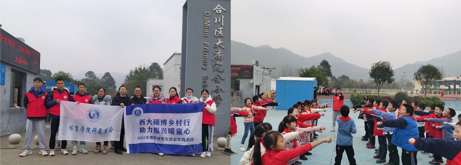 2022年,体育学院积极响应学校党委研究生工作部组织开展“百所山村小学计划”研究生社会实践活动的号召,组建实践团队于1月6日出发至合川区草街镇大庙完全小学,开展为期9天的寒假社会实践活动。