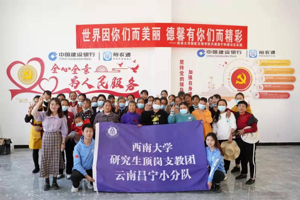 学校作为昌宁县的定点帮扶院校,委派国家治理学院党委定向帮扶工作小组在昌宁县田园镇开展深度乡村社会治理。学校派出包括国家治理学院社会工作专业研究生黄秘同学在内的两名研究生志愿者作驻村社工干部,与国家治理学院专业教师共同组成“乡村振兴定向帮扶小分队”,扎根易地扶贫搬迁小区德馨小区,以促进村民融合和社会组织发展为中心,助力昌宁乡村振兴。