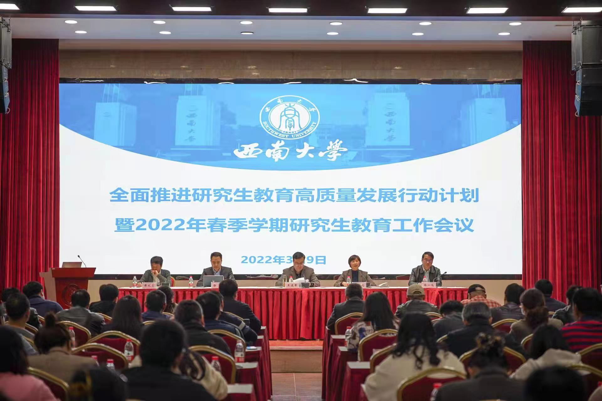 为全面推进研究生教育高质量发展行动计划,部署新学期研究生教育重点工作,进一步提升学校研究生培养质量,3月9日下午,学校组织召开全面推进研究生教育高质量发展行动计划暨2022年春季学期研究生教育工作会议。副校长王进军出席会议并讲话。