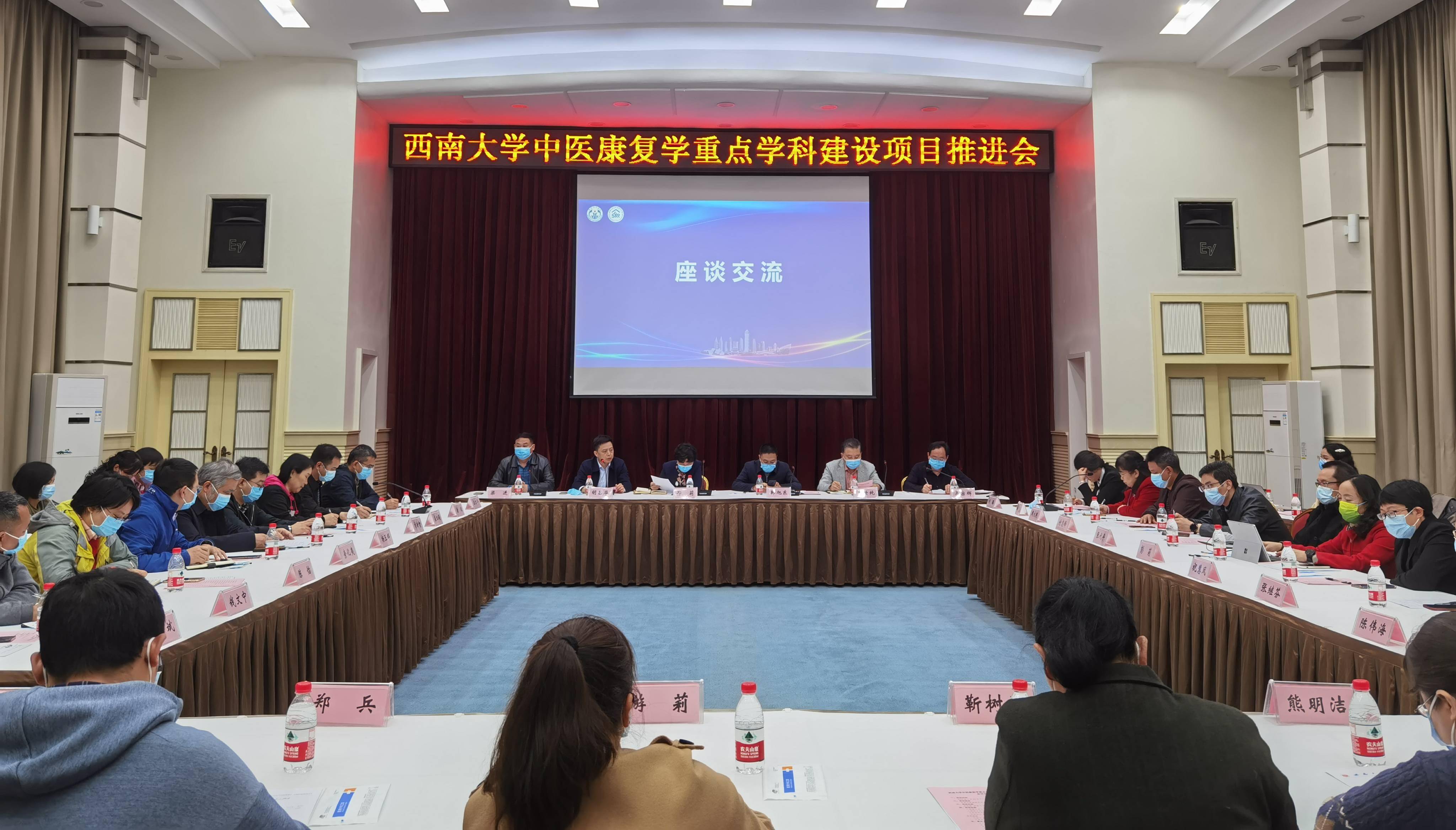 3月23日下午,学校中医康复学重点学科建设项目推进会在桂园宾馆金桂厅成功召开。学校副校长韩旭东,重庆市卫健委副主任邓莉出席会议。