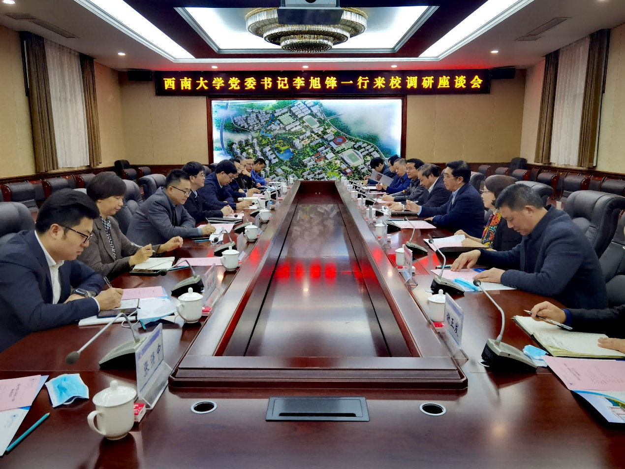 3月29日,学校党委书记李旭锋带队前往涪陵区考察调研,与涪陵区委书记王志杰就区校合作相关事宜交换意见。学校副校长赵国华,涪陵区委副书记喻显镔、区政府副区长石泽林等领导出席座谈会。