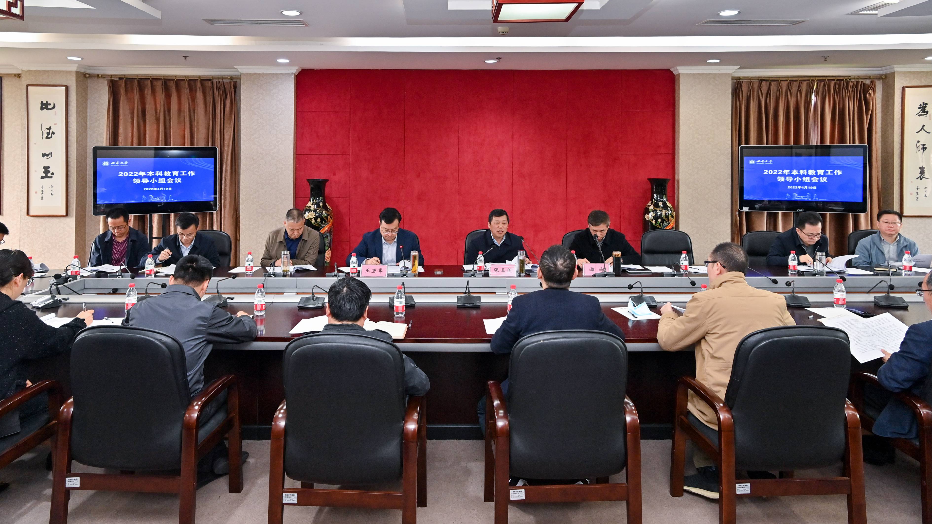 4月19日上午,学校组织召开本科教育工作领导小组会,专题研究近期本科教学重点工作。校长张卫国、党委副书记潘洵、副校长王进军出席会议。本科教育工作领导小组全体成员单位负责人,教务处(教师教学发展中心)有关人员参加会议。