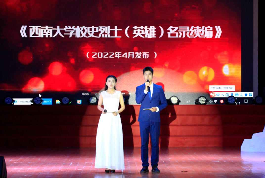 继去年校庆日举办《校史之夜》(第一季)主题文艺晚会,并发布26名校史烈士名录后,今年学校又发布新查实、考证出的校史烈士11名,包括新增补一位红岩烈士,以及牺牲在抗震救灾、扶贫路上的年轻校友等。