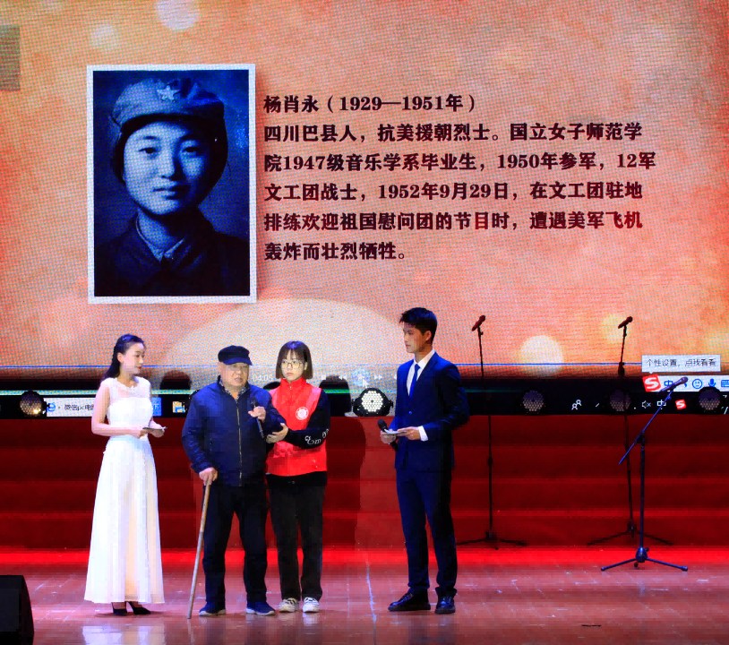 北碚水泥厂退休工人、杨肖永烈士亲侄子杨光元先生应邀来到了节目录制现场,和台上演员一起讲述姑姑牺牲的故事。