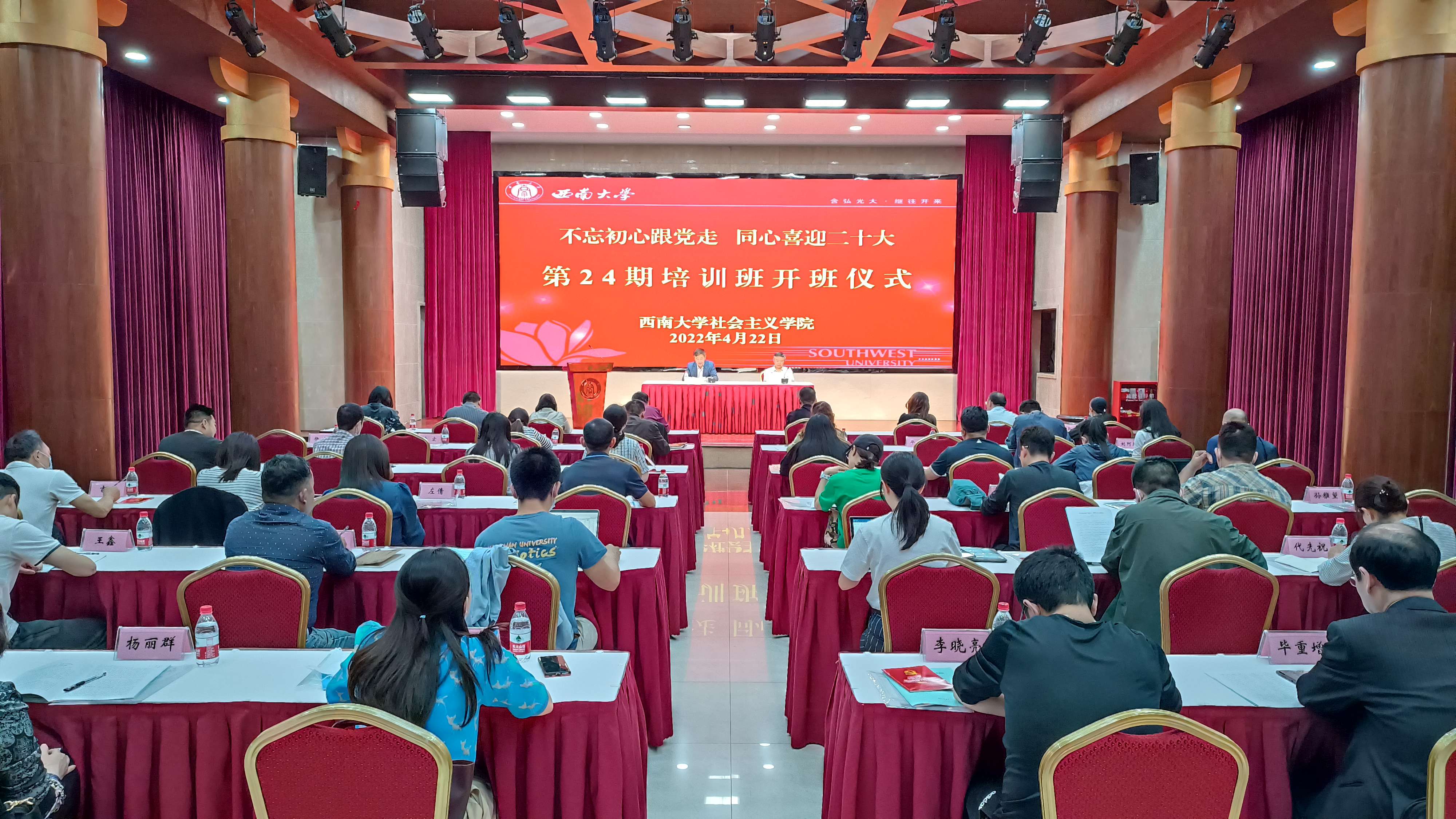 为深入学习贯彻习近平新时代中国特色社会主义思想,进一步巩固共同思想政治基础,认真落实学校“迎接学习宣传党的二十大主题宣传教育活动”任务,4月22日下午,学校社会主义学院“不忘初心跟党走 同心喜迎二十大”第24期培训班顺利开班。学校党委副书记潘洵出席开班仪式,学校各民主党派基层组织负责人以及全体学员参加仪式。