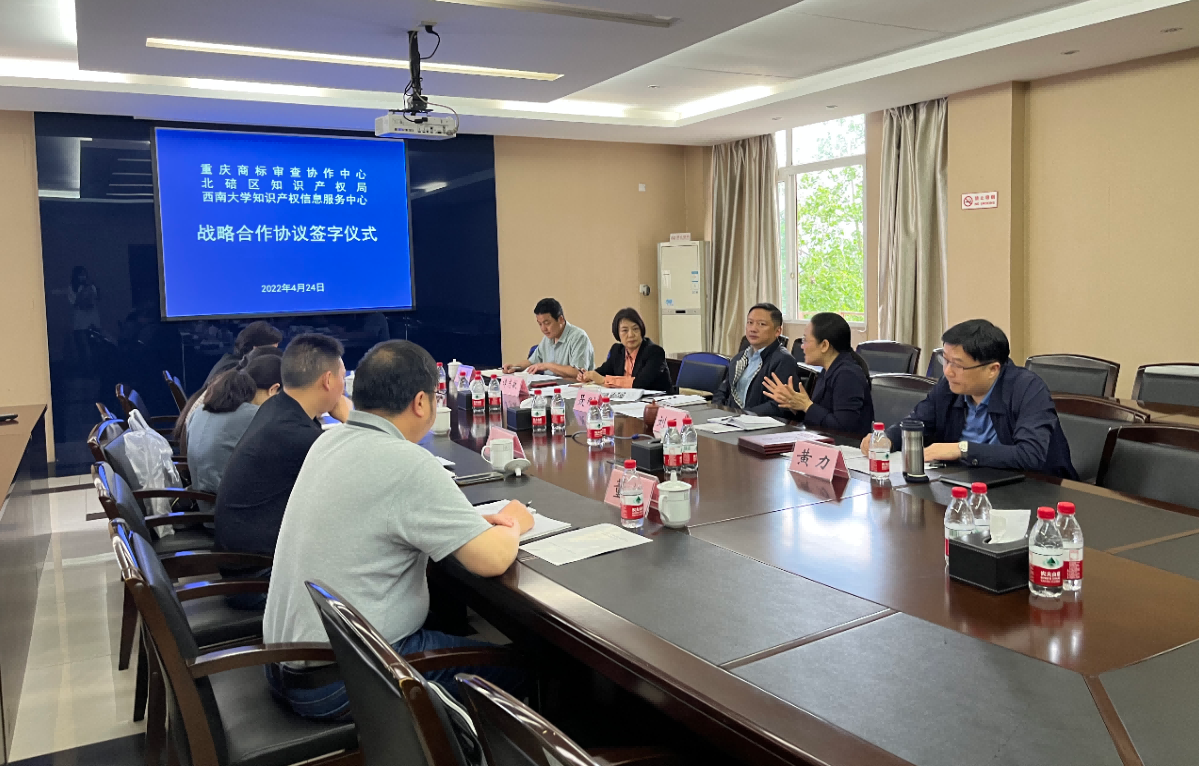 在第22个世界知识产权日和国家知识产权周来临之际,4月24日,学校知识产权信息服务中心、重庆商标审查协作中心和北碚区知识产权局等三方签订战略合作协议,深入实施国家创新驱动发展和知识产权战略,全面加强北碚区知识产权创造、运用、保护、管理和服务全链条能力。重庆商标审查协作中心副主任聂刚,北碚区市场监督管理局(知识产权局)党组书记、局长刘禾,学校知识产权信息服务中心、科学技术处和北碚区市场监管局有关负责人参加签约仪式。