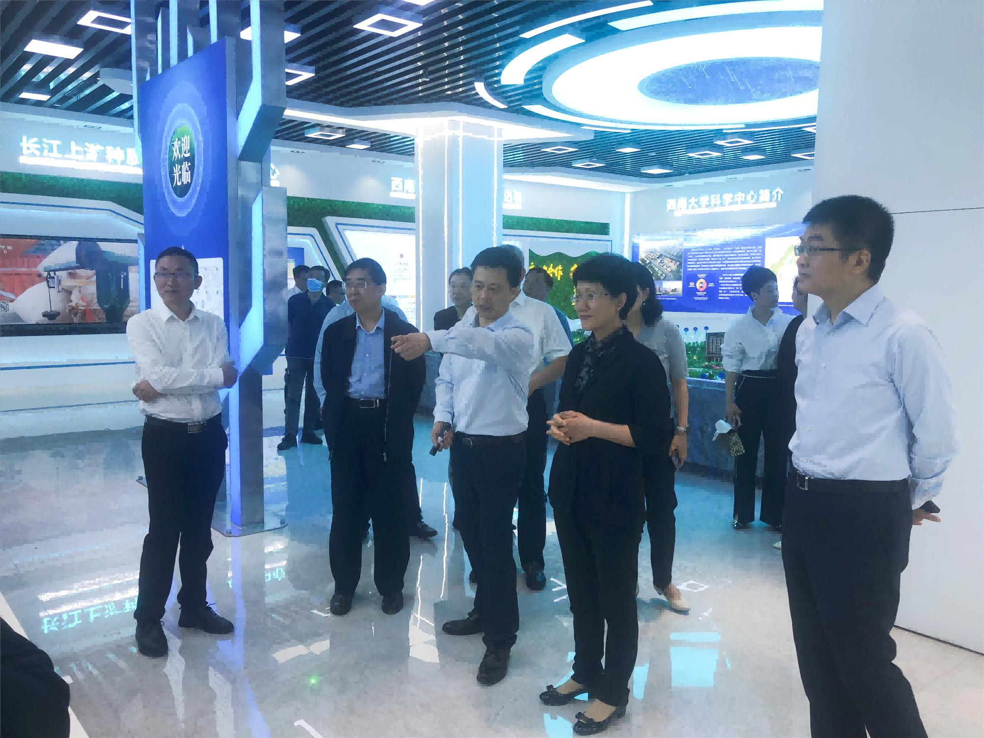 5月10日,重庆市政协副主席谭家玲带队调研beat365英国官网科学中心(以下简称“科学中心”)。北碚区政协主席董伦、区政府副区长向红等陪同调研。