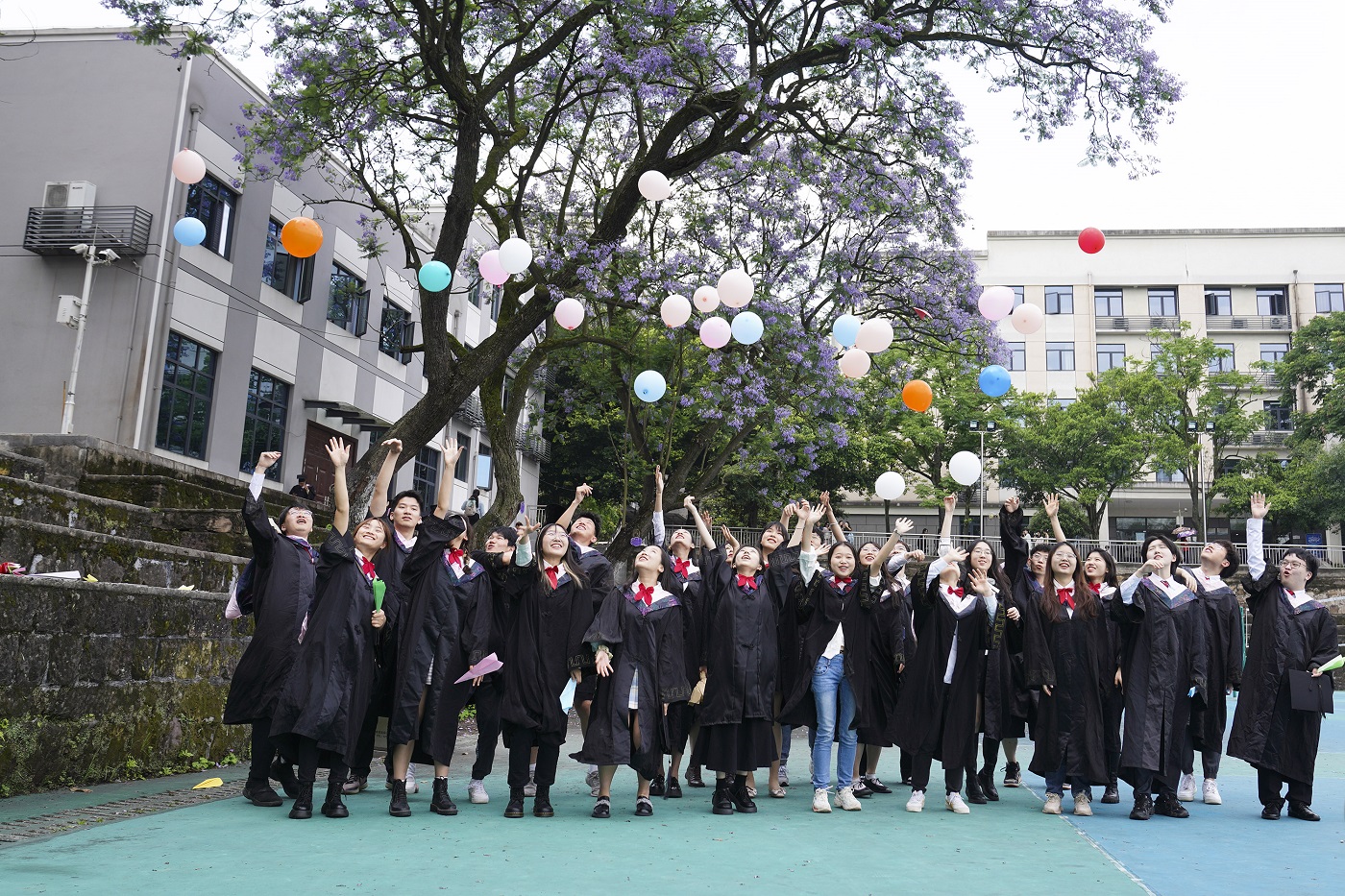 五月夏初,校园绿树成荫、百花齐放。恰逢毕业季,学校的蓝花楹竞相盛开,美不胜收,也吸引了学校众多师生摄影爱好者驻足拍摄。