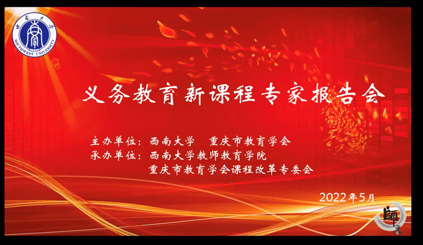 5月15日,为贯彻落实党和国家对基础教育领域综合改革的战略部署、深入学习《义务教育课程方案和课程标准(2022年版)》、专题研讨“新课程·新教材·新高考”背景下的义务教育新课程改革与教学创新,学校与重庆市教育学会联合主办、学校教师教育学院与重庆市教育学会课程改革专委会共同承办“义务教育新课程”线上专家报告会。学校副校长陈时见出席会议并致辞。
