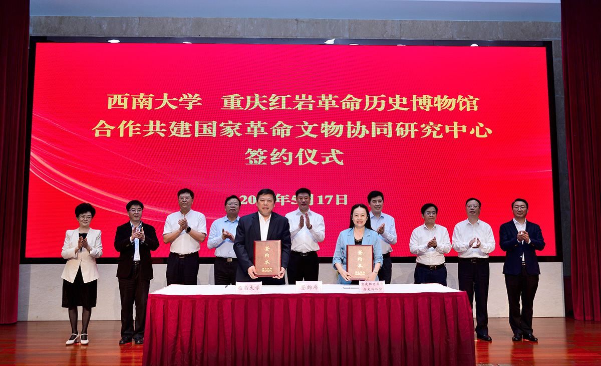 座谈会后,5月17日,双方在学校举行了合作创建“国家革命文物协同研究中心”签约仪式,市委常委、宣传部部长姜辉与市委宣传部、市教委、市文旅委、重庆大学、beat365英国官网、红岩博物馆等单位领导和专家共同见证签约仪式。学校校长张卫国、红岩博物馆馆长雷莹代表校馆双方签订合作共建框架协议,馆校双方将致力把研究中心打造成为国内一流、国际上有重要影响的创新性、示范性、引领性的红岩革命精神研究开发高地、革命文物保护利用高端智库。