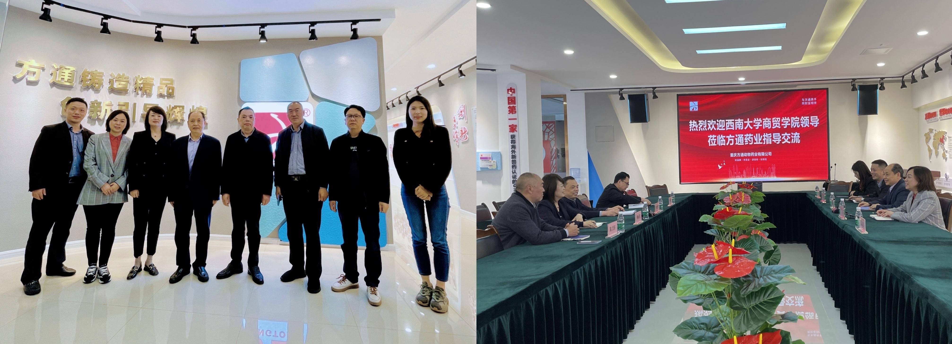 据悉,重庆方通动物药业有限公司创建于1999年,其国内、出口销售均位居国内动保行业前列,是集动物保健、治疗药品研发、生产、销售于一体的大型高科技企业。企业当前正处于转型升级期,急需高素质的技术、营销和管理人才。商贸学院抓住机遇顺势而为,不断创新思路求突破,将联合方通药业等一批优秀农牧企业,开展多种形式的育人主题教育系列活动。一方面培育新的就业岗位,鼓励毕业生积极投身特色领域就业,奋力开创人才培养和就业工作新局面;一方面为企业输送高质量人才,支持农牧企业品牌发展和文化建设。依托荣昌作为国家畜牧科技城的独特优势,落实全面推进乡村振兴决策部署,主动融入成渝地区双城经济圈建设大局,更好地服务地方经济高质量发展。