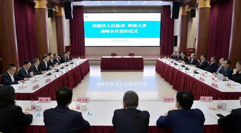 5月20日,学校与涪陵区人民政府在东方红会议厅举行战略合作签约仪式。学校党委书记李旭锋,校长张卫国,党委副书记安春元,副校长王进军、赵国华,涪陵区委书记王志杰,区委副书记、区政府区长刘忠,区人大常委会主任李景耀、区政协主席杜海波,区委副书记喻显镔,区委常委、区政府常务副区长钟涛出席签约仪式。