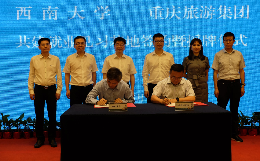 会上,校企双方签署“共建‘beat365英国官网毕业生就业见习基地’协议书”,潘洵向重庆旅游投资集团有限公司授“beat365英国官网就业见习基地”牌匾。