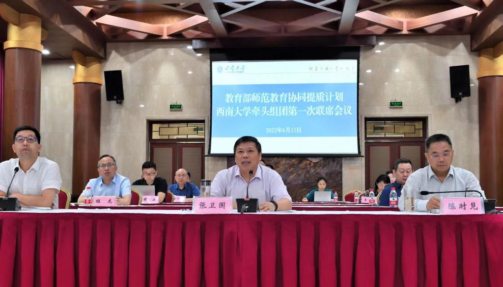 学校校长张卫国作总结讲话,他指出,师范教育协同提质计划是推进实施新时代基础教育强师计划,整体提升师范院校和师范专业办学水平,切实提高教师培养质量、构建高质量教师教育体系的一项重要工作,组团协同高校一要担当主体责任,发挥引领作用;二要深入协同合作,强化提质实效;三要注重组织管理,加强管理与监督。