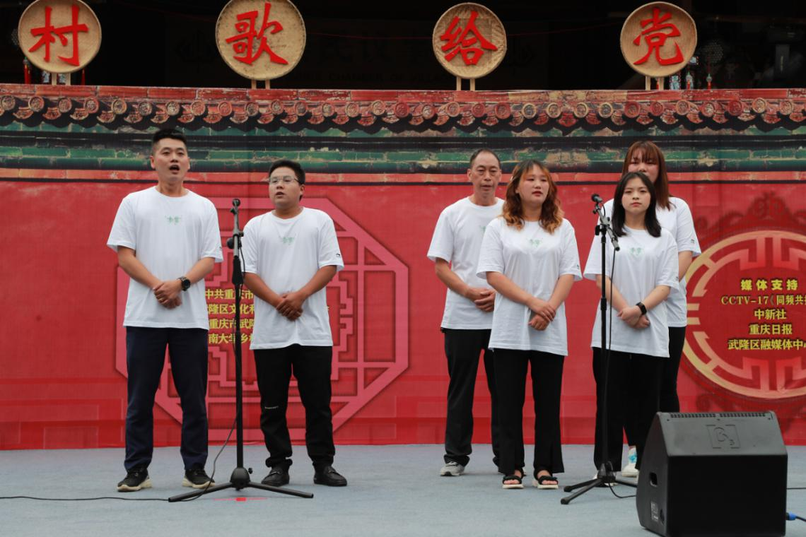 6月18日上午,来自全国各地的12首村歌在武隆区后坪乡文凤村天池苗寨唱响。为迎接党的二十大胜利召开、庆祝“七一”建党节即将到来,“唱支村歌给党听”2022年重庆市武隆区庆祝“七一”乡村音乐会在此举行。本次音乐会由学校乡村振兴战略研究院与武隆区委宣传部、武隆区文旅委、武隆区乡村振兴局联合主办,研究院师生全程参与组织与研讨工作。