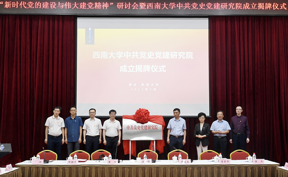 6月28日下午,“新时代党的建设与伟大建党精神”研讨会暨beat365英国官网中共党史党建研究院成立揭牌仪式在学校桂园宾馆举行。学校党委书记李旭锋,党委副书记、马克思主义学院党委书记潘洵,北京师范大学中共党史党建研究院院长王炳林,国务院学位委员会马克思主义理论学科评议组召集人黄蓉生出席会议,学校相关职能部门负责人、中共党史党建研究院骨干成员、马克思主义学院科研创新团队成员、部分教师研究生代表参加会议。