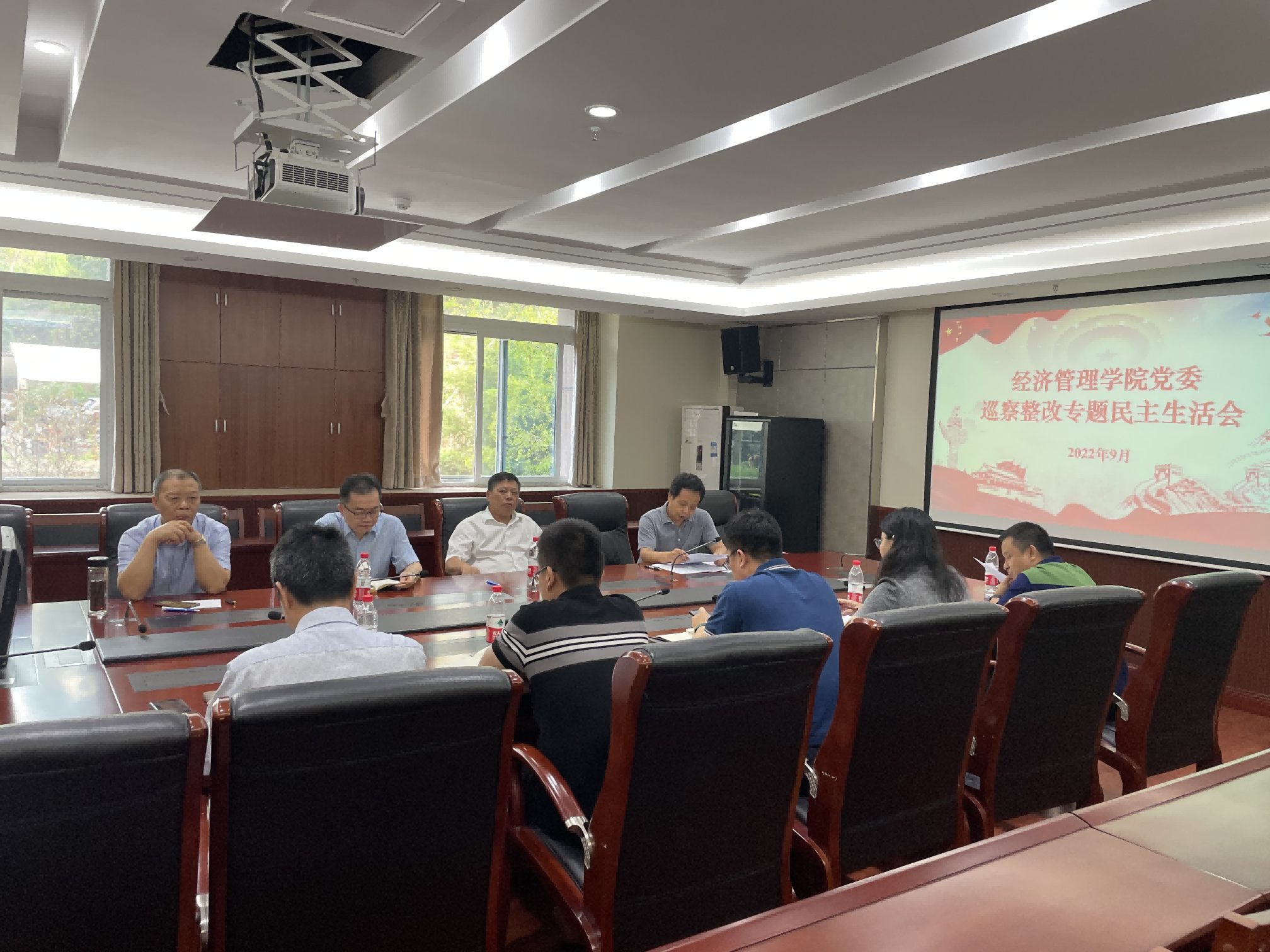 9月14日上午,经济管理学院党委巡察整改专题民主生活会在学院A203会议室召开,校长、党委副书记张卫国出席会议,党政办公室主任靳拥军、经济管理学院全体班子成员参加会议。会议由经济管理学院党委书记卢跃进主持。