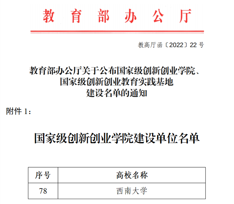 入选国家级创新创业学院建设单位