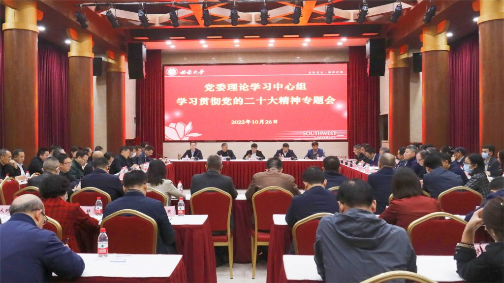 10月26日上午,学校在东方红会议厅召开党委理论学习中心组学习贯彻党的二十大精神专题会,深入学习贯彻党的二十大和二十届一中全会精神,全面贯彻习近平新时代中国特色社会主义思想,完整、准确、系统把握党的二十大提出的新思想、新战略、新要求。