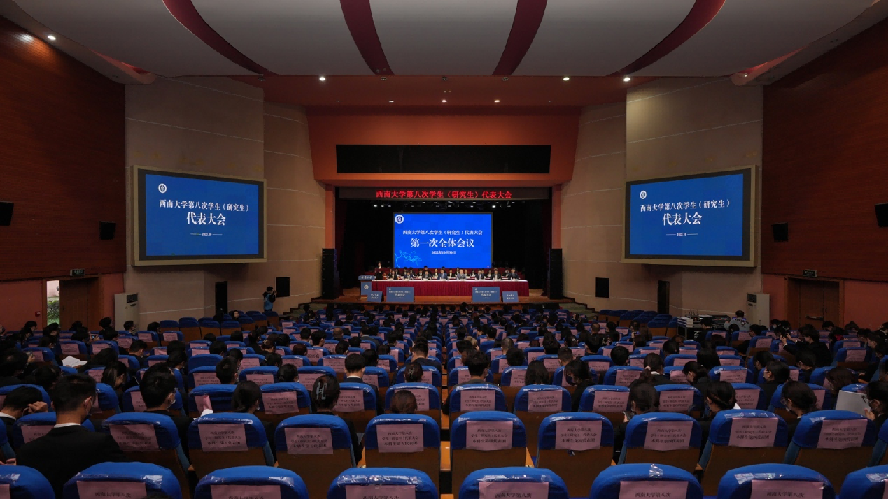 10月30日,学校第八次学生(研究生)代表大会(以下简称“学代会”)胜利召开,学校党委副书记潘洵出席大会开幕式,重庆市学生联合会主席陈毅到场祝贺,党委学生工作部、党委研究生工作部等部门负责同志,全体专兼职团干部、学生代表等共计600余人与会。大会审议通过第七届学生(研究生)委员会工作报告,听取第八次学生(研究生)代表大会提案工作报告,发出《青春奋斗正当时,自立自强向未来》倡议,选举产生新一届学生会和研究生会主席团。