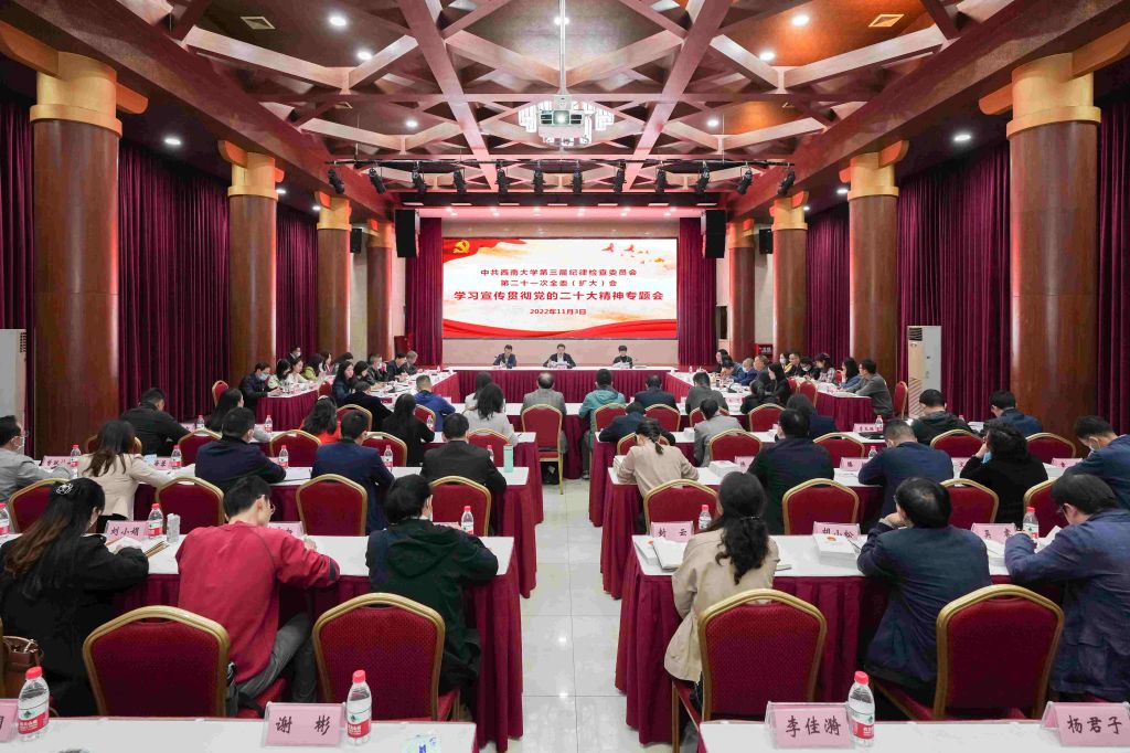 夏玉峰传达学习了《中共中央关于认真学习宣传贯彻党的二十大精神的决定》、习近平总书记在中国共产党第二十次全国代表大会上的报告精神。纪委办监察处巡察办主要负责同志传达学习了十九届中央纪律检查委员会向中国共产党第二十次全国代表大会的工作报告、二十届中央纪委常委会第一次会议、教育部党组会以及重庆市纪委常委会(扩大)会议和干部大会精神。