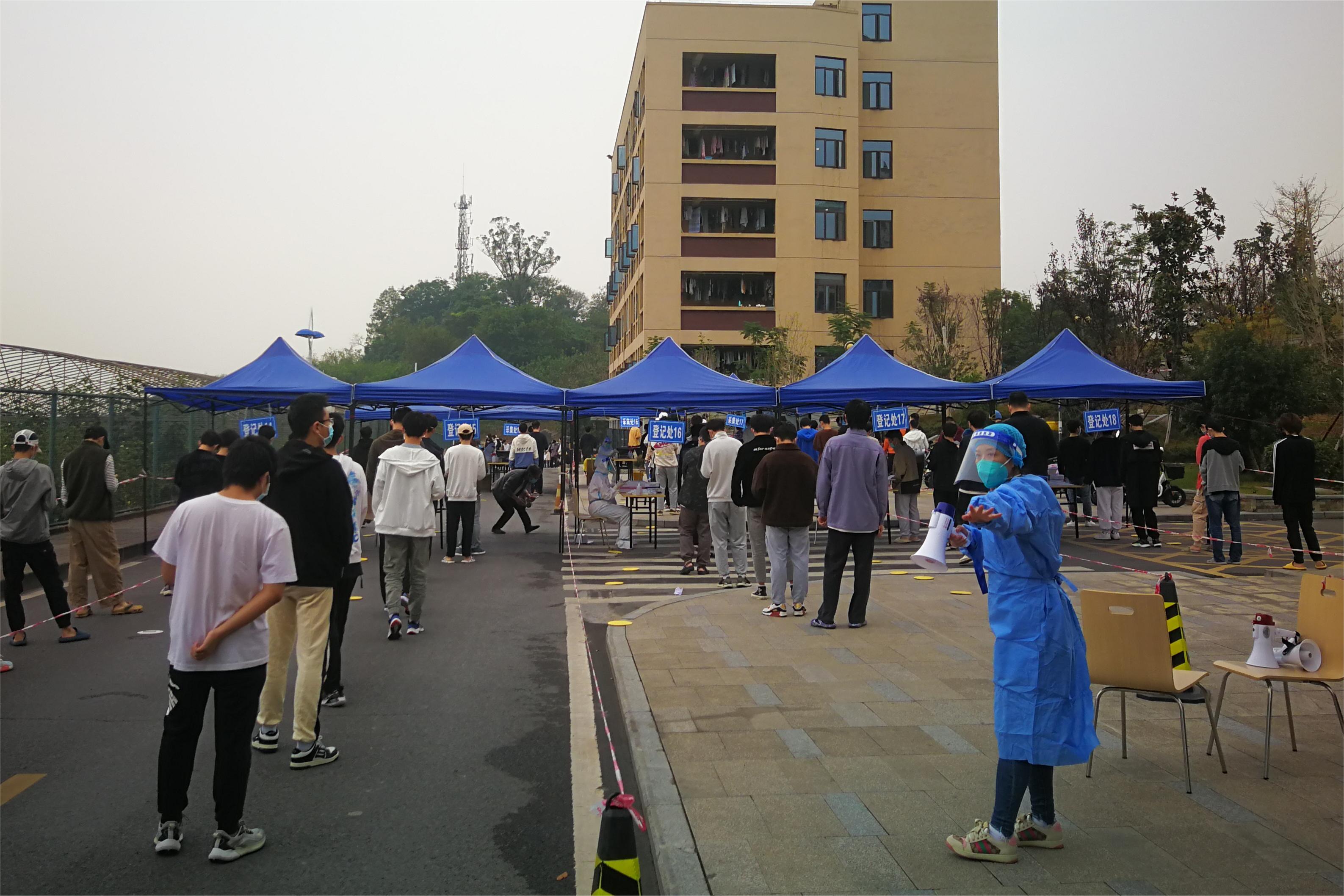 在核酸检测点,校领导坐镇指挥,深入了解核酸检测工作,对大家心怀大局、不畏风险、冲锋在前的精神给予充分肯定,鼓励医务人员再接再厉、坚守岗位,叮嘱他们加强自身防护,规范采样送检流程,做到应检尽检,不漏一人。