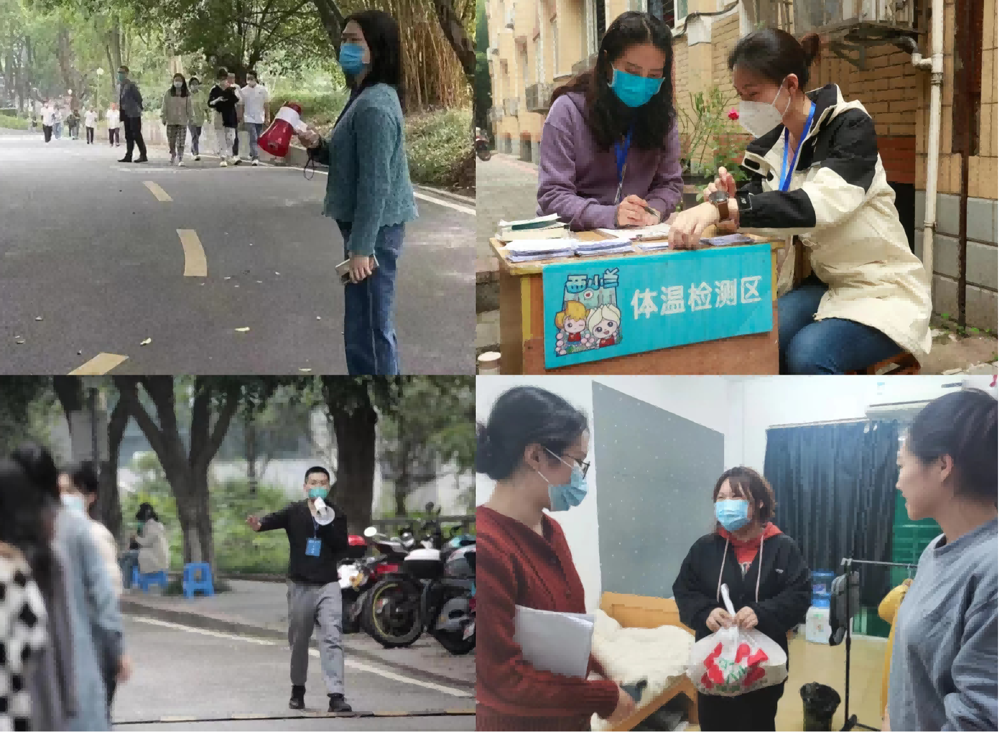 当前重庆市疫情防控形势仍然严峻复杂,学院师生党员积极响应号召,面对疫情挺身而出,克服实际困难,积极参与校内外志愿服务。严怡带头报名参与每日核酸检测志愿服务。校内居住的郑婷老师从11月4日起坚持参加校内核酸检测志愿服务,每天3、4个小时的核酸检测信息录入工作,她一干就是十几天,从未喊苦,从不推辞工作安排。今年刚入职的顾恩澍老师主动报名当起了小区楼栋志愿者,每日为封控的住户运送生活物资。侯宗平、王命洪等老师也积极报名小区志愿服务,关键时刻展现党员担当。