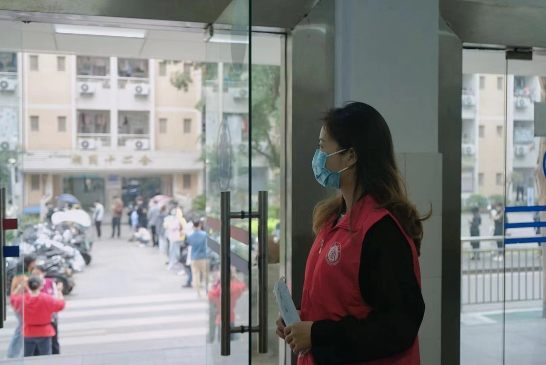 “同学,进出请佩戴好口罩哦!”清晨,大部分同学还沉浸在睡梦之中,2021级社会工作专业研究生黄秘已在负责的宿舍楼下就位,身着红色志愿服,协助宿管阿姨提醒楼栋同学做好个人防护。作为一名党员,黄秘积极响应号召,投身抗疫防线的同时,她还动员“绩镛先锋”研究生党员志愿服务团更多党员同志加入进来,以实际行动践行使命担当。在她的带领下,王晓蓉、林倩等党员同志纷纷成为园区志愿者,共护校园,同战疫情。
