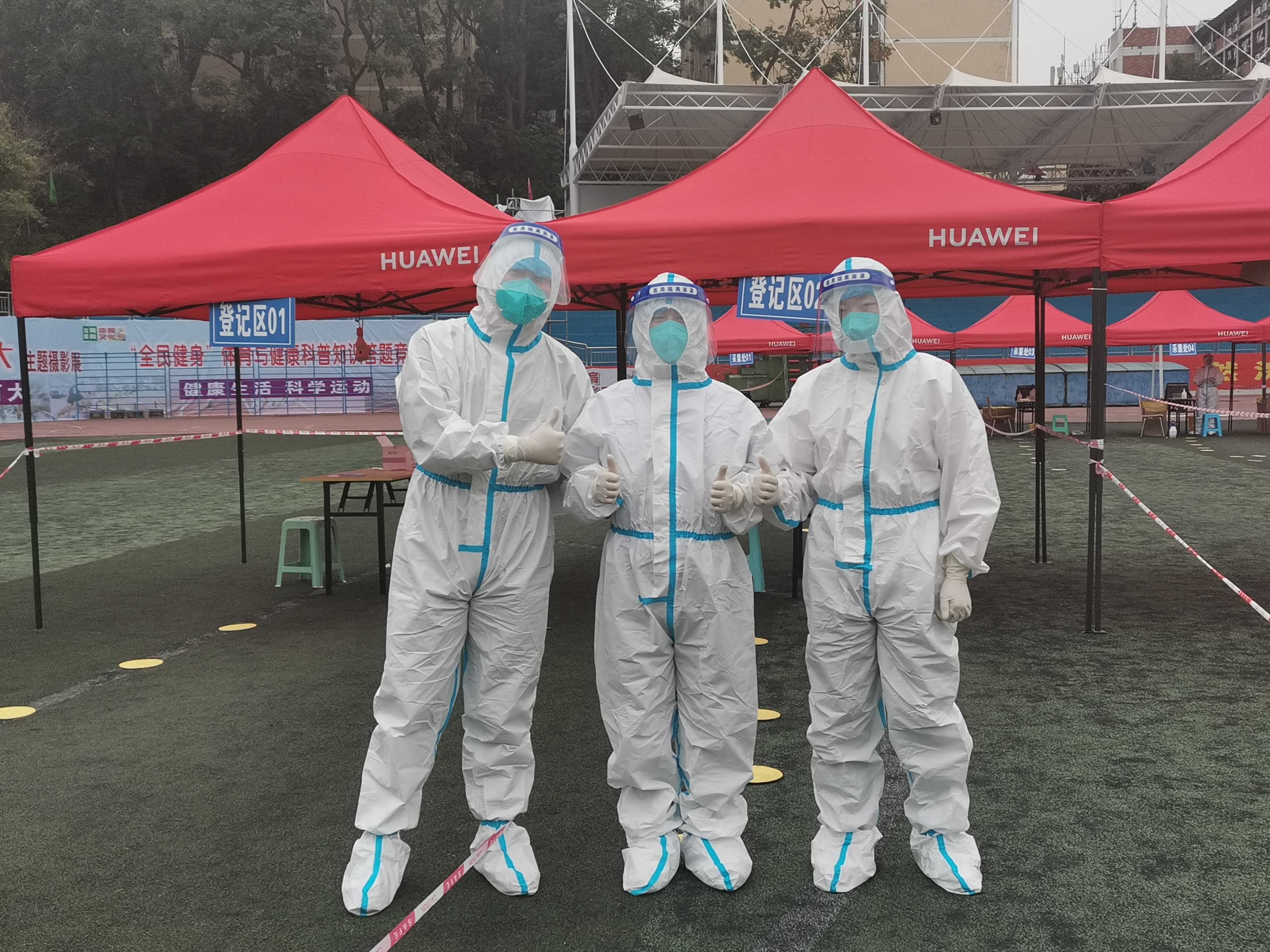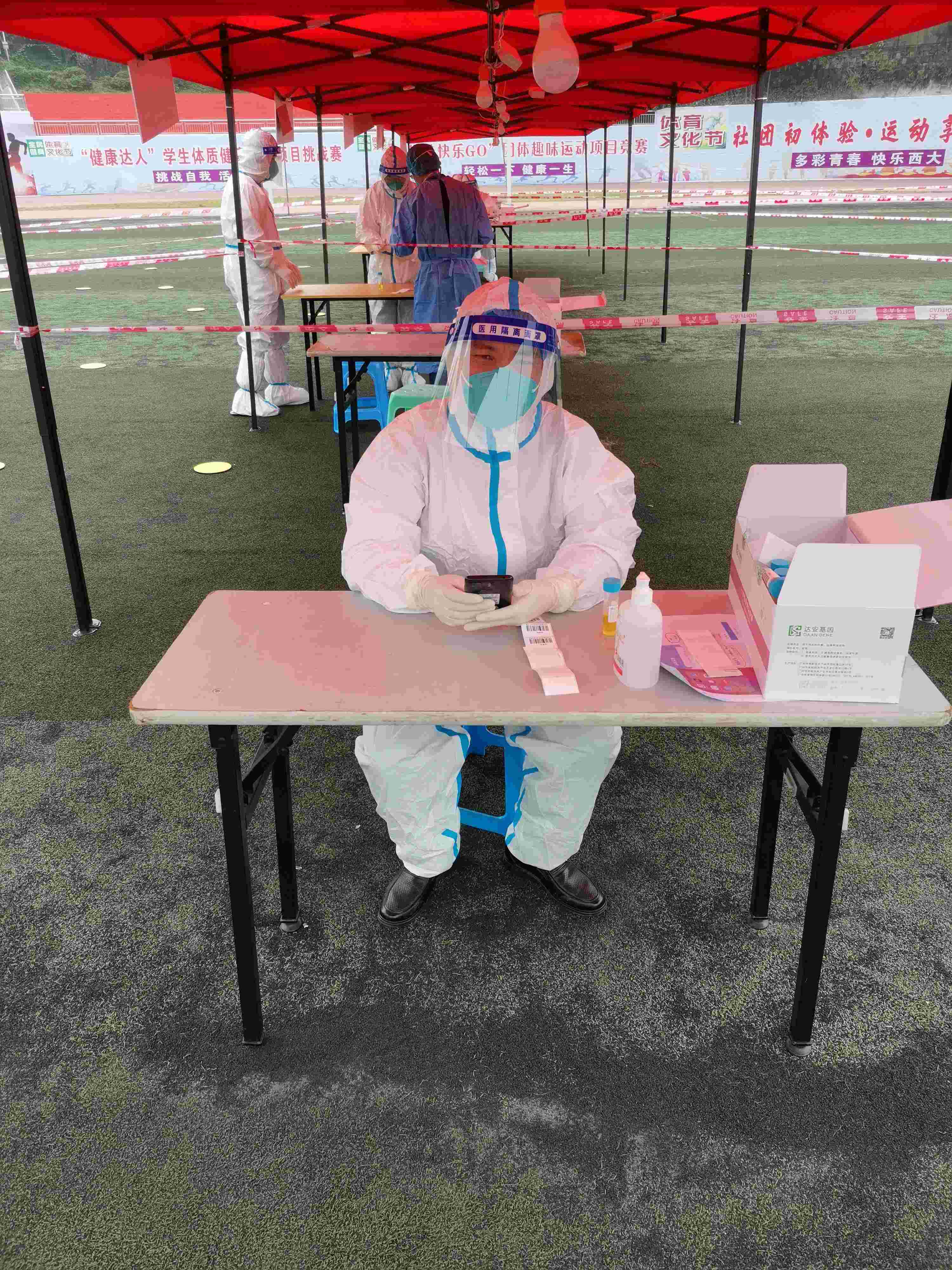 学院实验室的大型仪器设备不能随意断电,作为实验师,刘老师每天上午都要到各实验室进行巡查,检查高温高能设备是否正常运作,是否出现险情警报,学生实验操作是否符合规范等。上午的工作一结束他就要匆匆赶到核酸检测点投身志愿服务。谈起近段时间参与志愿服务的经历,刘老师说,“以前只是从媒体上了解医务工作者和防疫工作人员的辛苦,但是去做了志愿者才是亲身体会到其中的不易。穿着防护服坐着扫码,几个小时下来基本浑身都会湿透,而由于医务工作者和防疫工作人员工作需要,他们时常都是全副武装大半天甚至更长时间。对比一线医务工作者的辛勤付出,我们做的这些微不足道。”