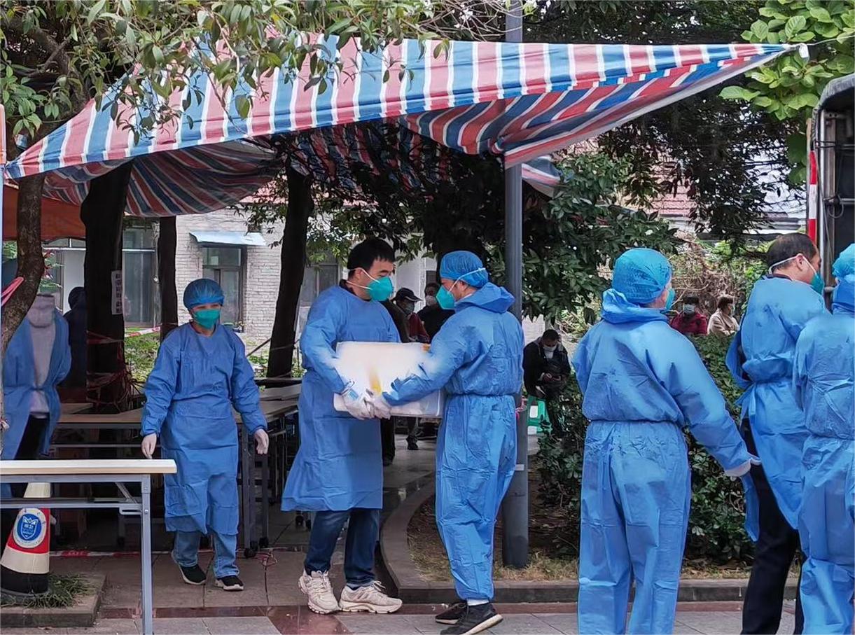 11月20日,天生路2号橘园有关宿舍被确定为疫情高风险区以来,学院疫情防控工作队伍听从指挥,负责橘园2舍、3舍的疫情防控工作,胡建军积极参加高风险区第二运动场党员志愿服务工作,邓洪波、王永强参与负责橘园片区核酸检测、送餐安排等工作,陈玥、凌飞积极参与到高风险区楼栋管理工作。当负责的高风险区学生核酸检测发现1例结果异常时,学院疫情防控工作队伍立刻召开紧急会议,启动预案,部署工作,开展流调,查询轨迹,组织转运隔离,做好隔离人员心理疏导,安排运送隔离所需生活物资。在疫情面前,文学院疫情防控工作队伍以迅速到位、决不缺位、相互补位的态度奋战在抗疫第一线。