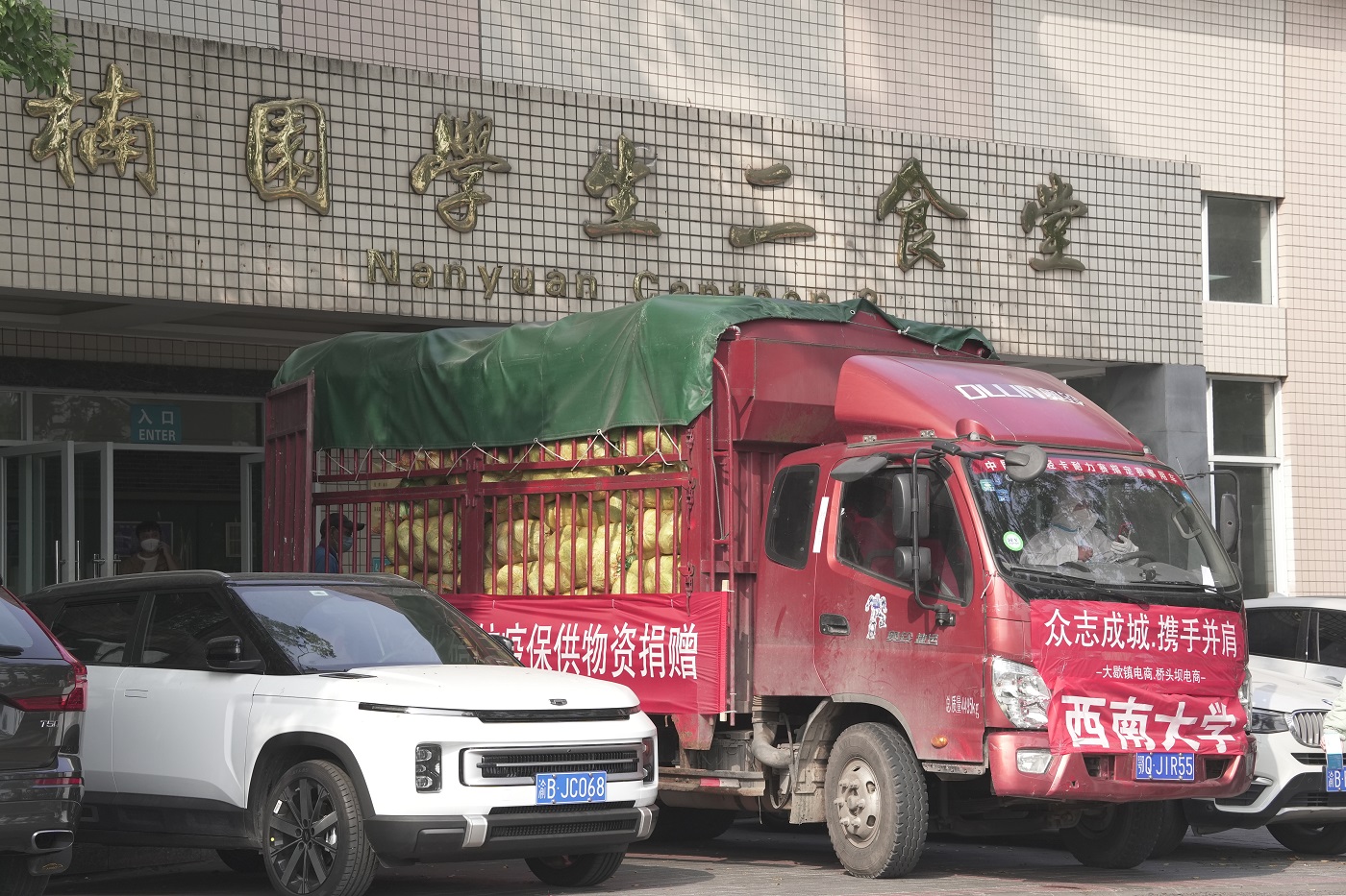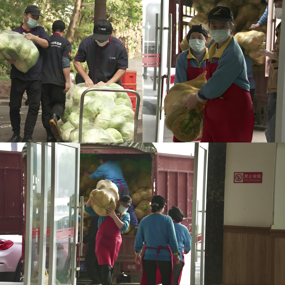 11月27日,当地村民早上5点就起来去地里收割包菜和白菜装车。桥头坝农业合作社总经理向学明说:“村民们都很积极,想着能出点力,让大学里的老师和学生们吃上自己种的新鲜蔬菜,早日战胜疫情。” 红鑫农业合作社总经理李晓红表示,只要学校需要,他们还会继续输送支援蔬菜。