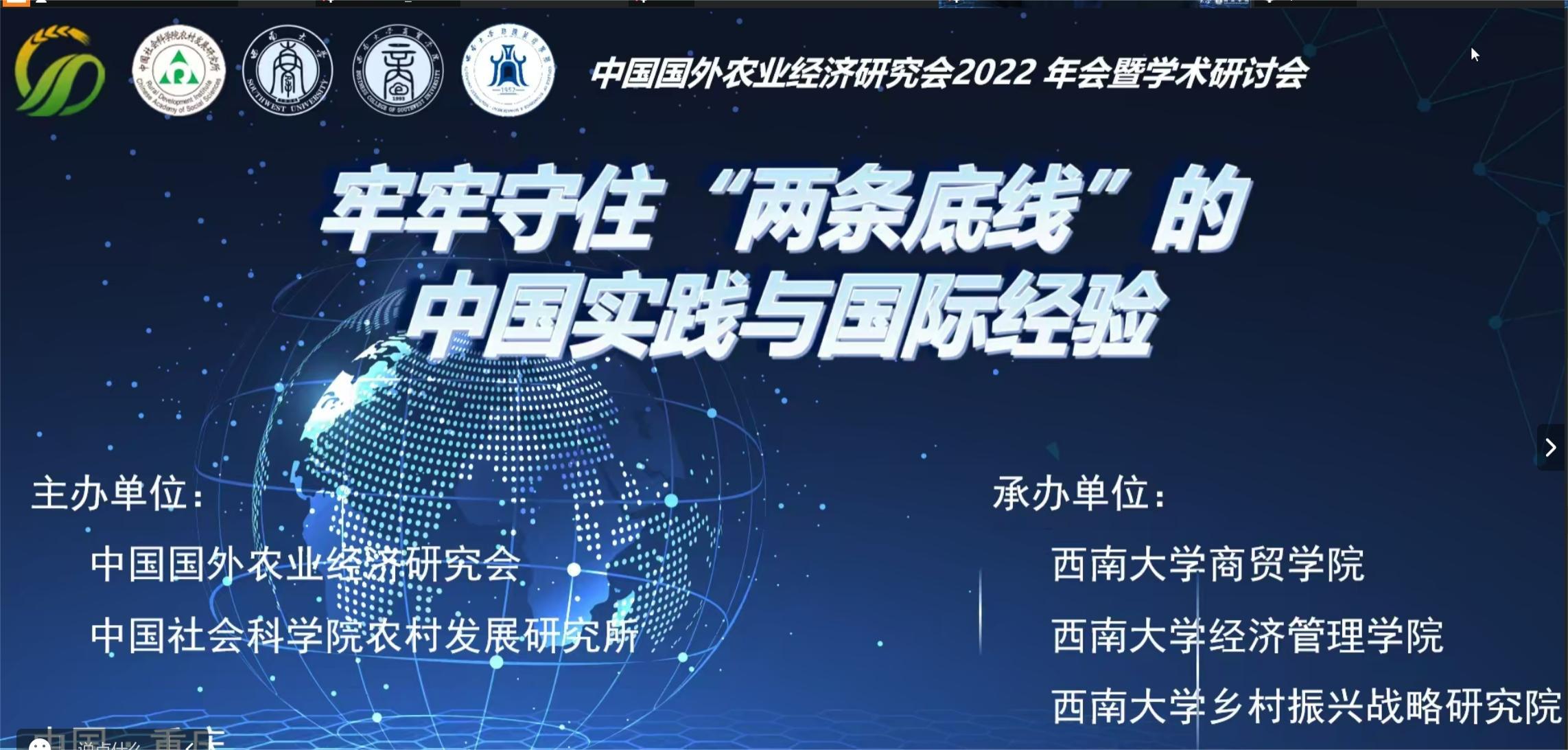 12月4日,由中国国外农业经济研究会、中国社会科学院农村发展研究所主办,学校商贸学院与经济管理学院、乡村振兴战略研究院联合承办的中国国外农业经济研究会2022年会暨学术研讨会,以线上会议的形式召开。