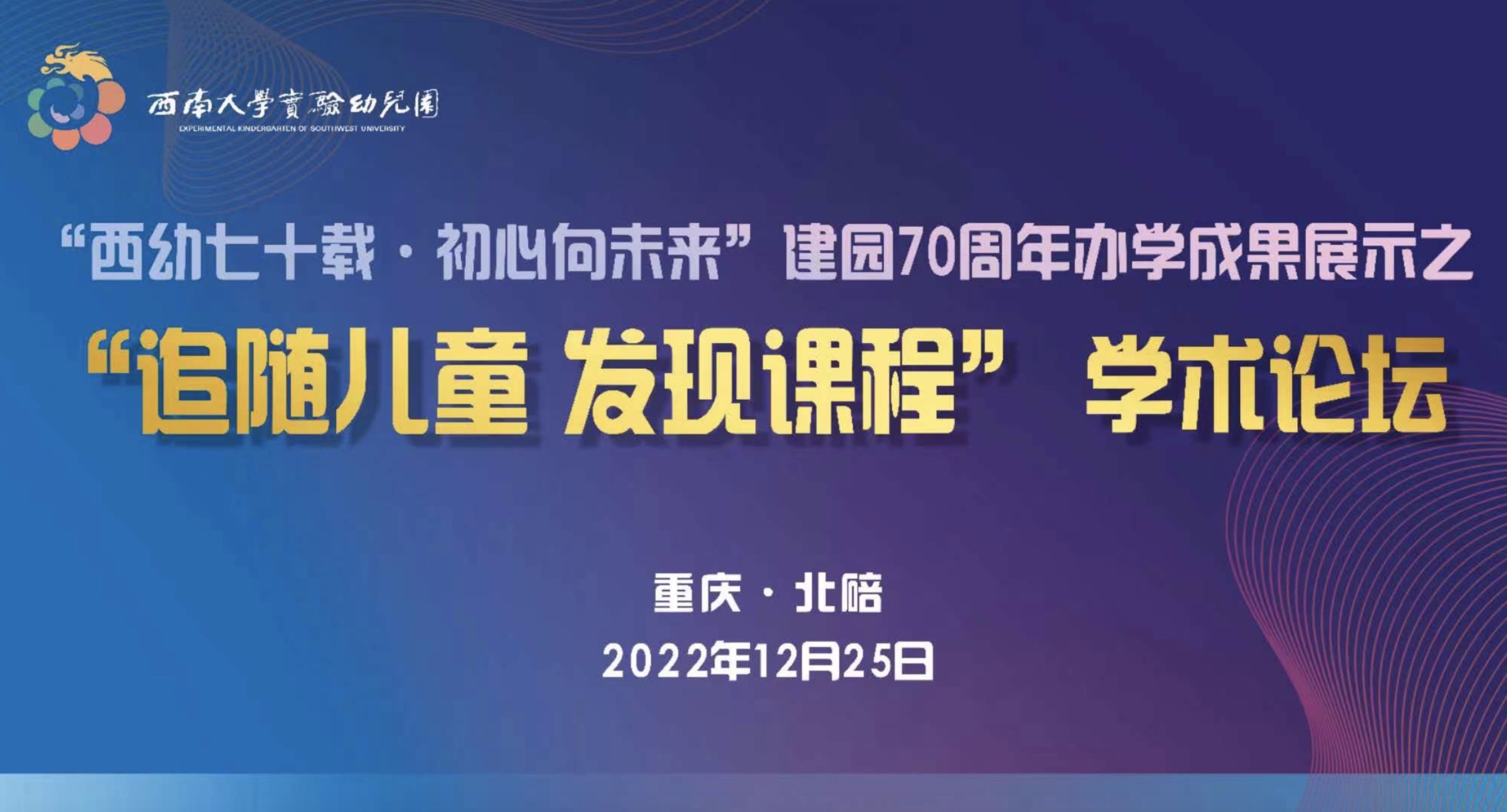 今年是学校实验幼儿园建园70周年。实验幼儿园由同时创建于1952年的原西南师范大学附属幼儿园和原西南农业大学附属幼儿园于2005年9月合并组建而成。为落实立德树人根本任务,推动园所内涵建设和高质量发展,努力办好人民满意的学前教育,12月25日“追随儿童 发现课程”线上学术论坛成功举行。