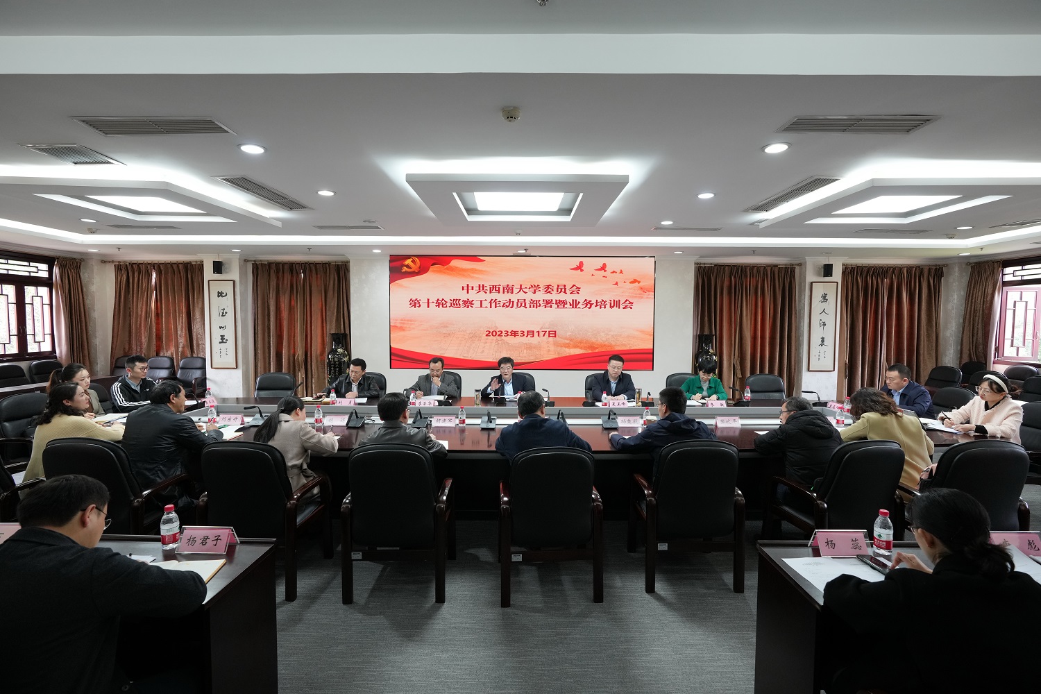 动员部署会后,党委常委、党委组织部部长李荣华,党委宣传部、党委网络工作部部长黄杰,纪委副书记、党委巡察工作办公室主任刘勇,人力资源部部长邹芙都,数学与统计学院党委书记唐宇,北碚区委巡察专员袁顺颖,党委巡察工作办公室副主任王春阳等同志分别作了专题辅导和综合培训。