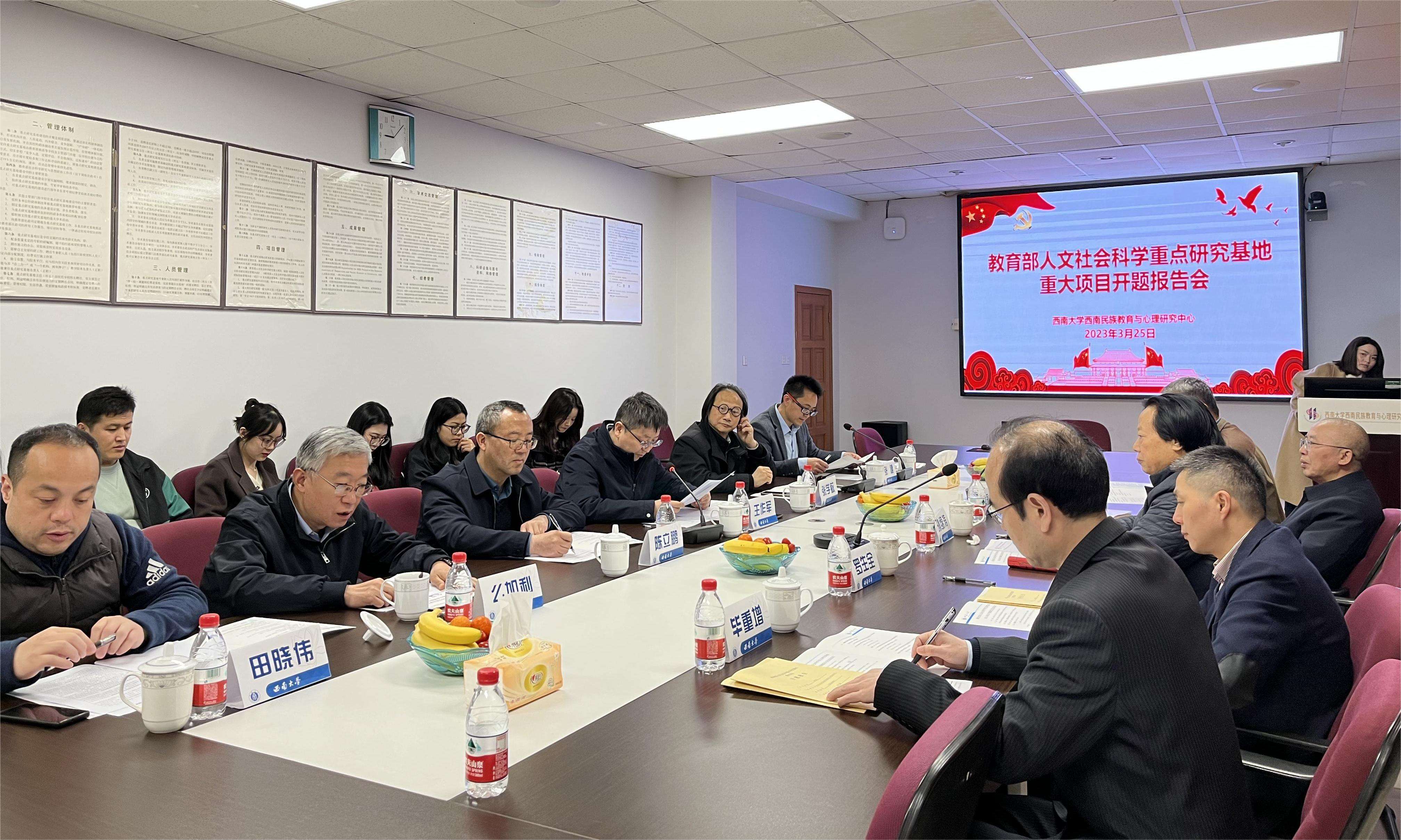 3月25日,西南民族教育与心理研究中心(以下简称“中心”)于荟文楼537会议室举行教育部人文社会科学重点研究基地重大项目(以下简称“基地重大项目”)开题报告会。