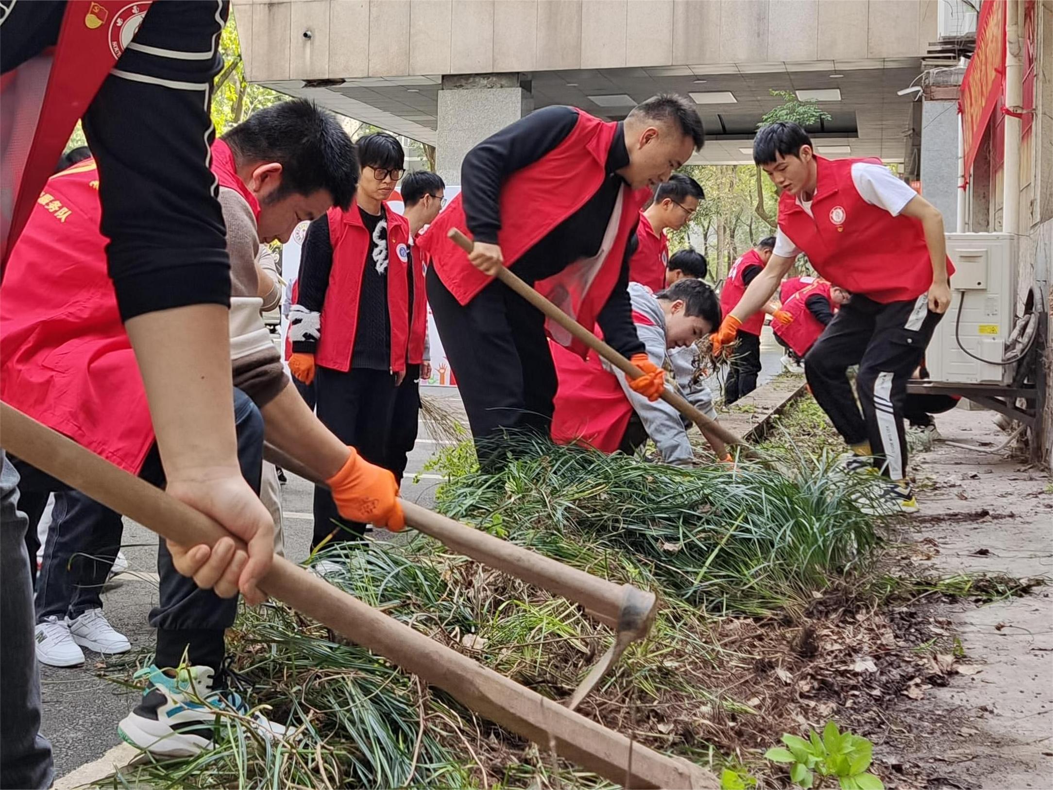 劳动不下线,主题党日接地气综合实践见成效。3月10日,学院研究生第一党支部、第二党支部联合学校后勤保障部党委第六党支部开展“三全育人”劳动教育主题党日活动。在物理大楼的花坛前,党员同志们身穿红马甲,借助锄头、铲子、各种专业工具,积极投入拔草、翻土和栽花工作中。大家分工协作,挥锹除草、取集土壤、种植花苗、播撒花种、取水灌溉、转运垃圾,到处都是忙碌的身影,又都井然有序、配合默契。此次劳动教育主题党日活动是学院获批学校第二批“三全育人”试点建设单位以来的工作创新和具体举措,旨在让同学们在汗水中体验艰辛,在动手中感受快乐,同时不断锤炼脚踏实地、拼搏奋斗的精神。