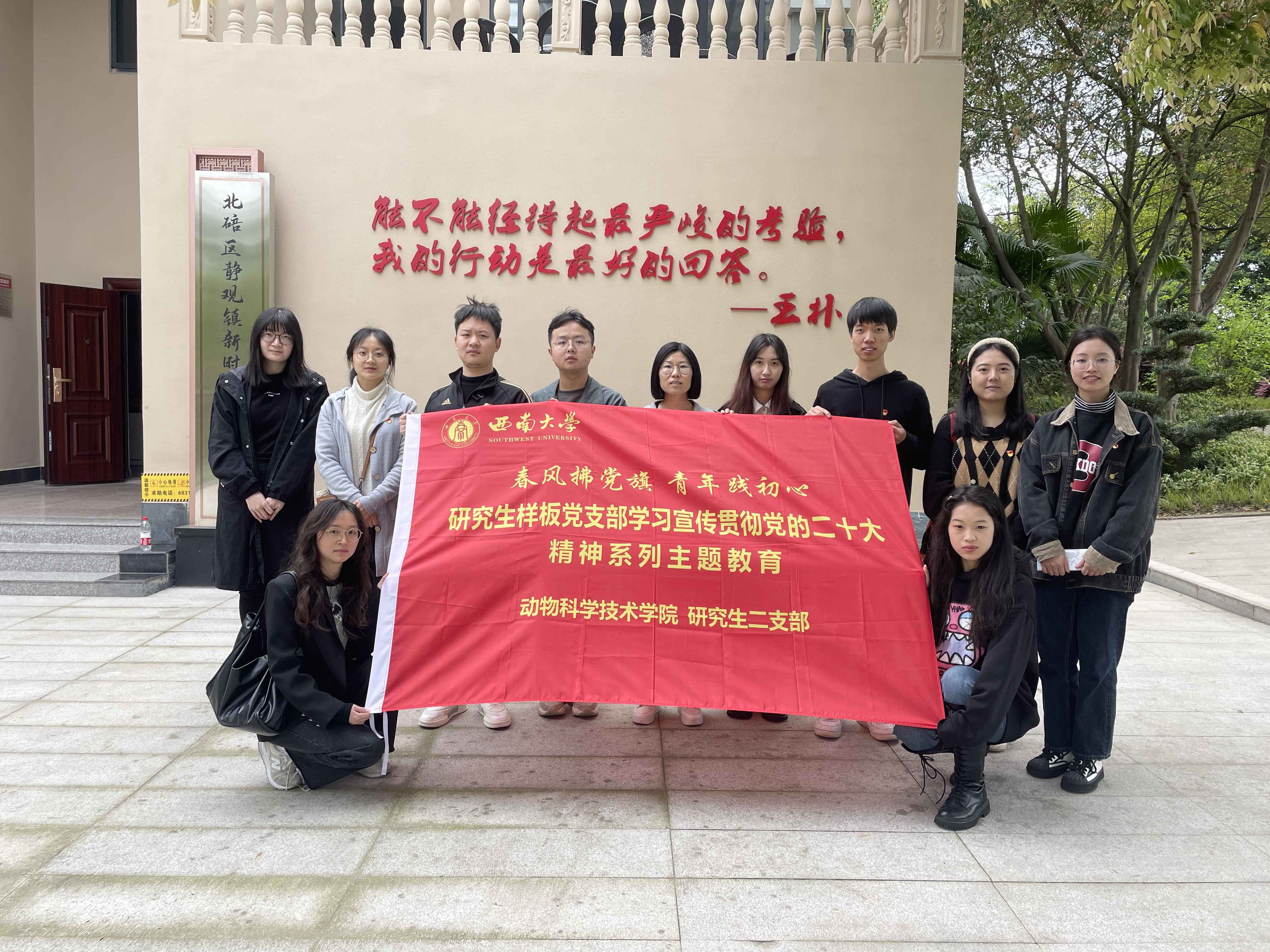 为深入学习宣传贯彻党的二十大精神,激励青年学子奉献乡村振兴,4月4日,动物科学技术学院研究生第二党支部赴北碚区静观镇王朴村开展主题为“陵园静穆祭英烈,红色英魂永传承”的祭扫活动、“静观宣讲传党音,乡村振兴入民心”党的二十大精神宣讲活动。