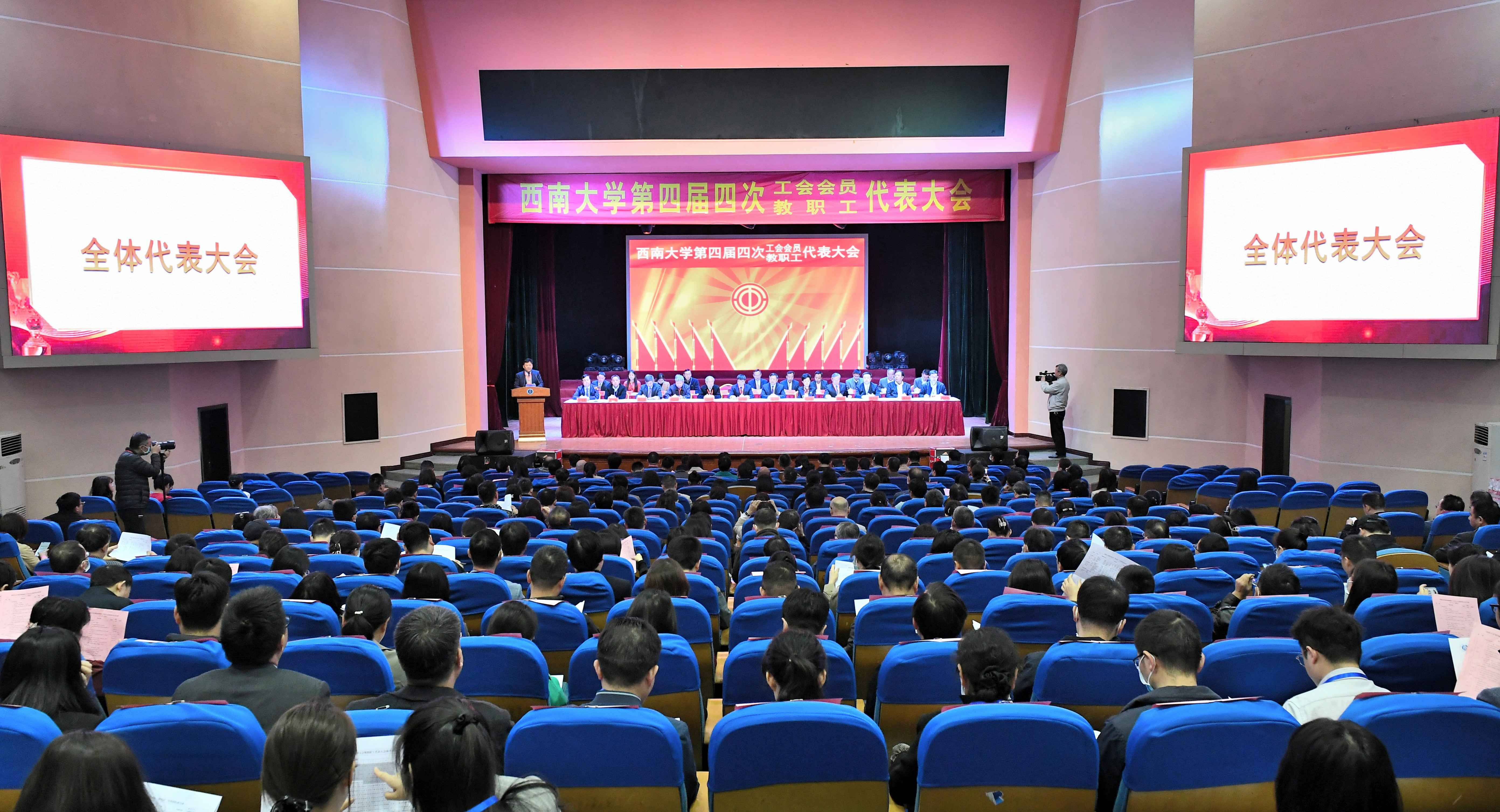 4月7日上午,学校第四届工会会员代表大会、教职工代表大会第四次会议(以下简称“双代会”)在光大礼堂举行。全体在校校领导、特邀代表、双代会正式代表和列席代表近500人参加会议。