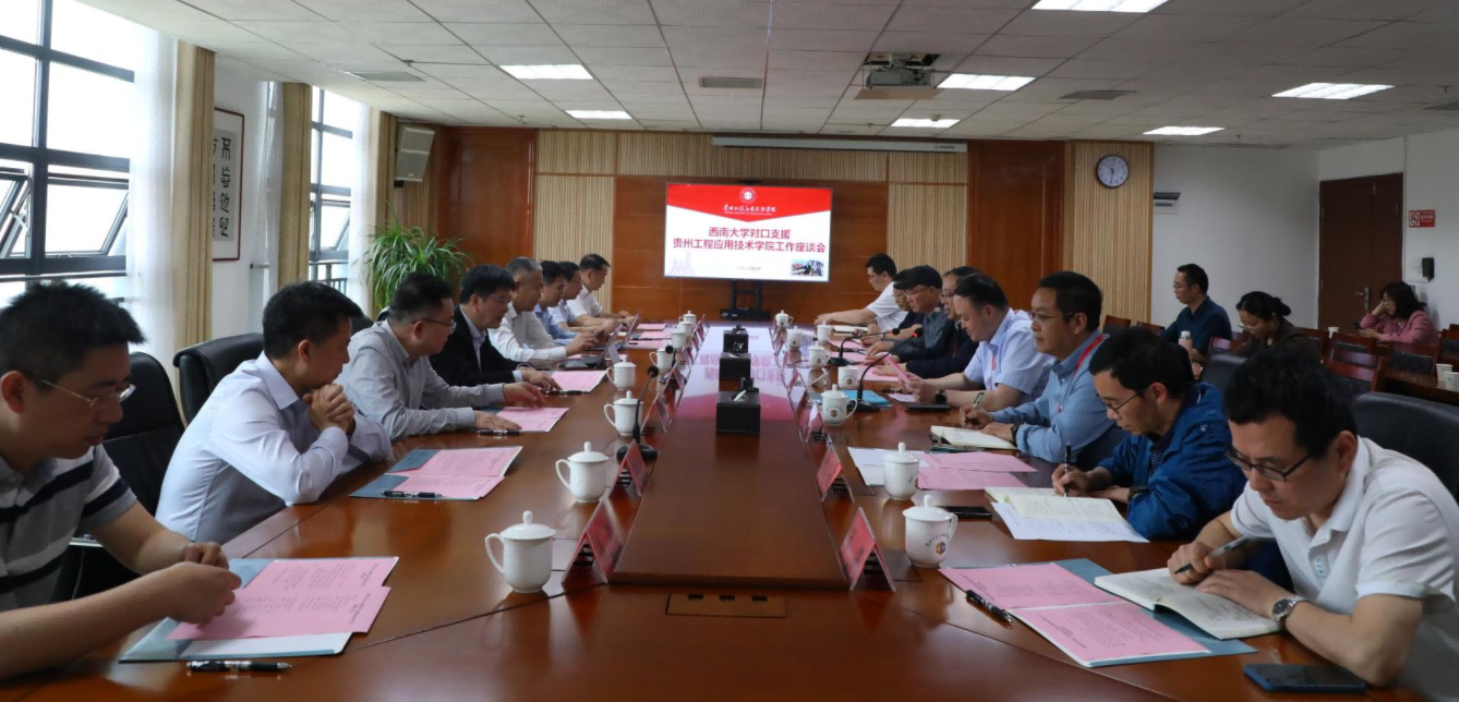 4月17日,学校对口支援贵州工程应用技术学院工作座谈会在贵州工程应用技术学院举行。学校党委书记李旭锋、副校长葛信勇,贵州工程应用技术学院党委书记令狐荣锋、校长张嗣杰、党委副书记向贤礼、副校长赵军出席会议。两校相关职能部门负责人参加会议。