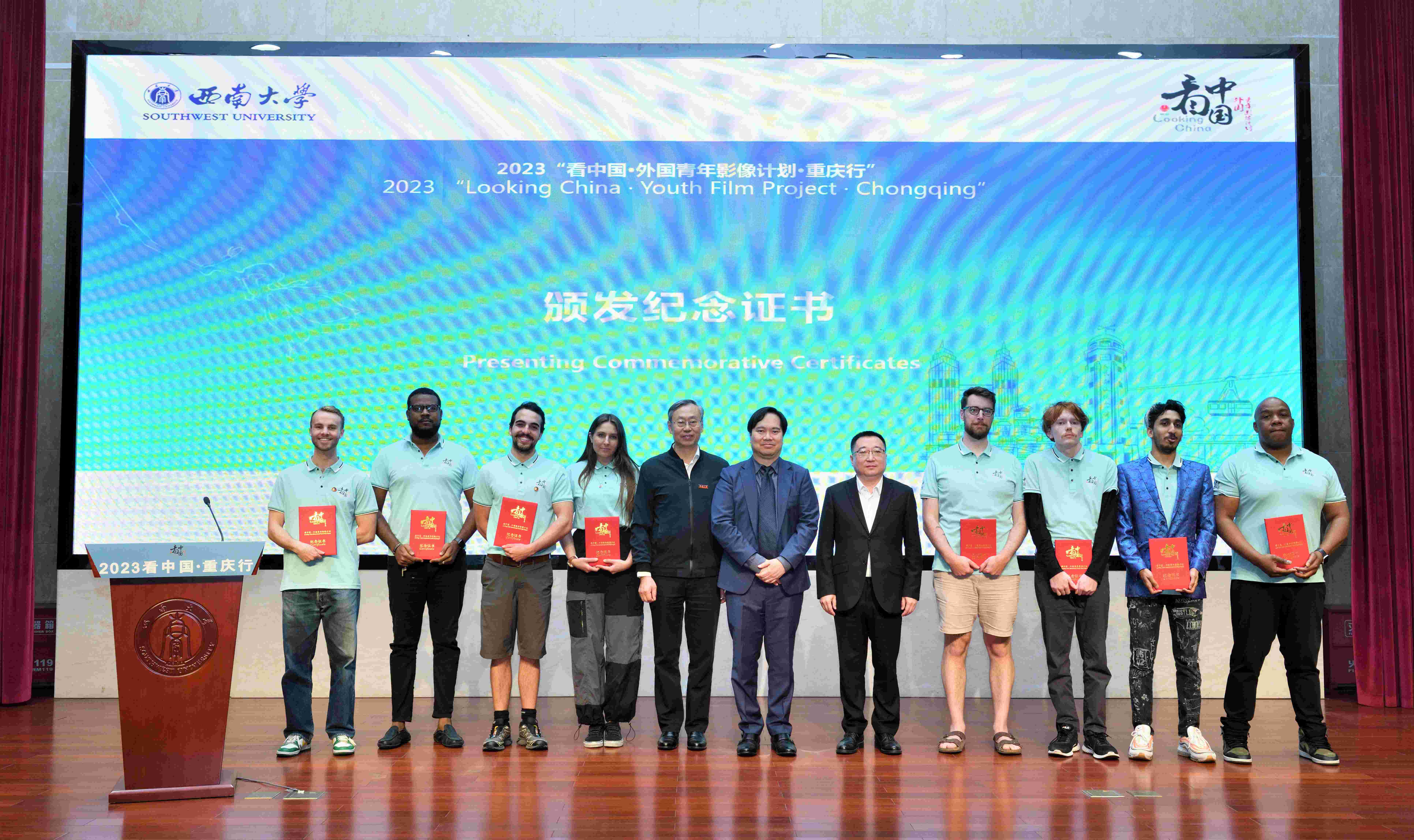 展映仪式上,与会领导向外国青年导演、中方制片人以及中外方教师团队颁发纪念证书。本次参与展映仪式的9部作品分别是:《春寻三民》《初来榨到》《仁之舞》《忆松溉》《树说》《杨氏民宅》《后坪回音》《方斗人家》《巫咸·鱼踪》。这些作品普遍以外国青年的视角记录中国“三民”,向世界讲述中国故事,加强中外青年之间的跨文化沟通、交流与合作,从而提升中国文化的国际影响力。