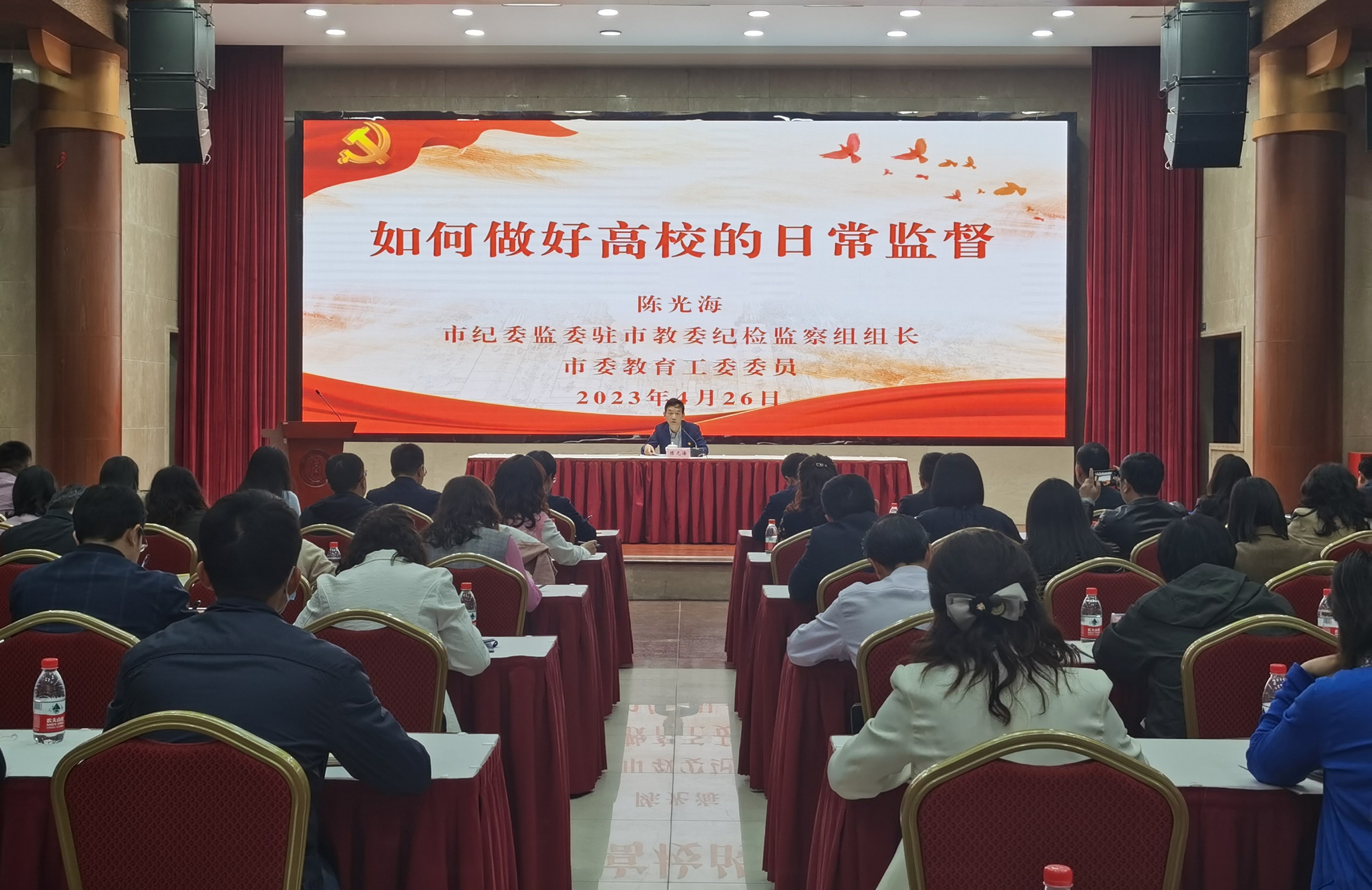 为提升纪委干部履职能力和专业素养,近日,学校纪委举办干部队伍能力提升专家报告会,邀请重庆市委教育工委委员、重庆市纪委监委驻市教委纪检监察组组长陈光海作“如何做好高校的日常监督”专题报告。学校二级纪(工)委书记、直属党支部纪检委员,纪委办监察处巡察办干部参加会议。会议由学校党委副书记、纪委书记夏玉峰主持。