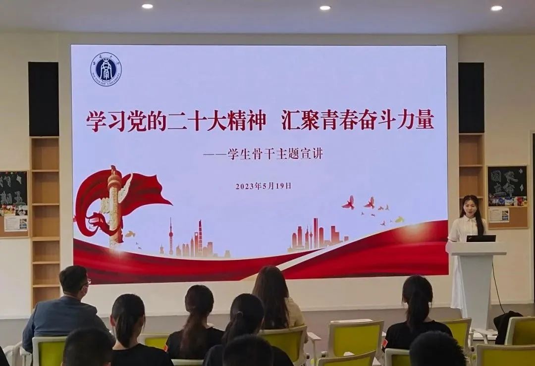 为推动习近平新时代中国特色社会主义思想和党的二十大精神入脑入心,充分发挥青年朋辈示范引领作用,5月19日下午,党委学生工作部、学生工作处在青李空间举办“学习党的二十大精神,汇聚青春奋斗力量”学生骨干主题宣讲活动。党委学生工作部有关负责同志和马克思主义学院专家出席活动。