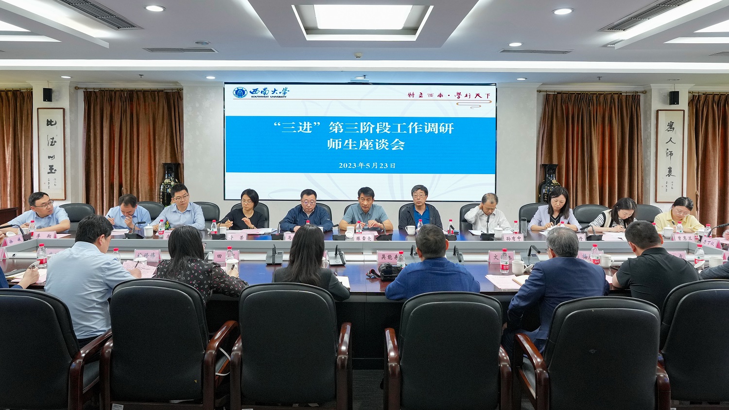 5月23日,中宣部国际传播局副局长陈雪亮,教育部高等教育司二级巡视员、人文社科教育处处长张庆国一行来校,对“三进”工作开展调研。学校党委书记李旭锋、副校长崔延强会见并陪同调研。调研座谈会由市委宣传部副部长、市政府新闻办主任马然希主持。