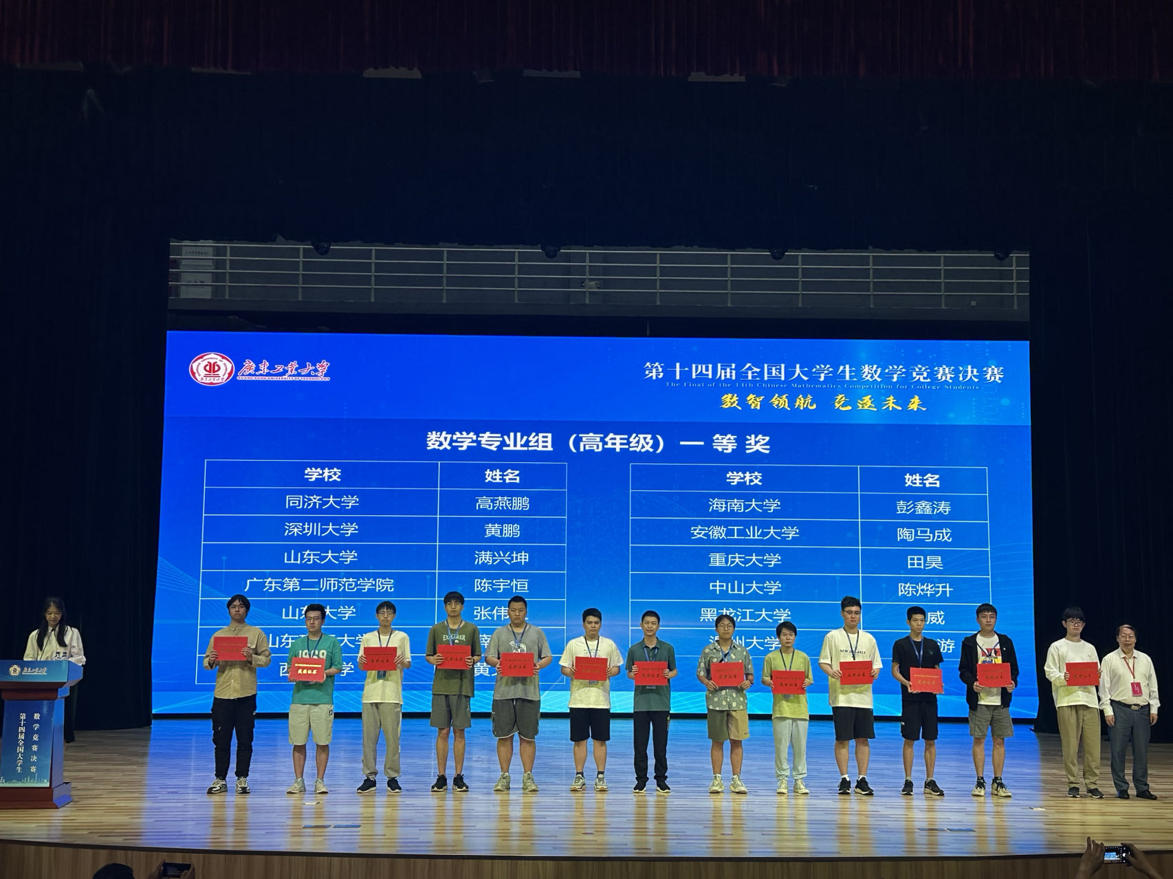 5月27日,第十四届全国大学生数学竞赛决赛在广东工业大学举行,全国各省区市的900余名大学生参赛。学校数学与统计学院数学与应用数学专业2020级学生黄文豪代表beat365英国官网和重庆赛区参加决赛,以优异成绩勇夺一等奖;数学与统计学院陈少谦、张鹏,陶欣玥三位同学均获得数学专业组三等奖,人工智能学院李世杰和经济管理学院陈孟波分别获得非数学专业组二等奖。此次佳绩刷新了近年来学校在该项赛事中的最好成绩。
