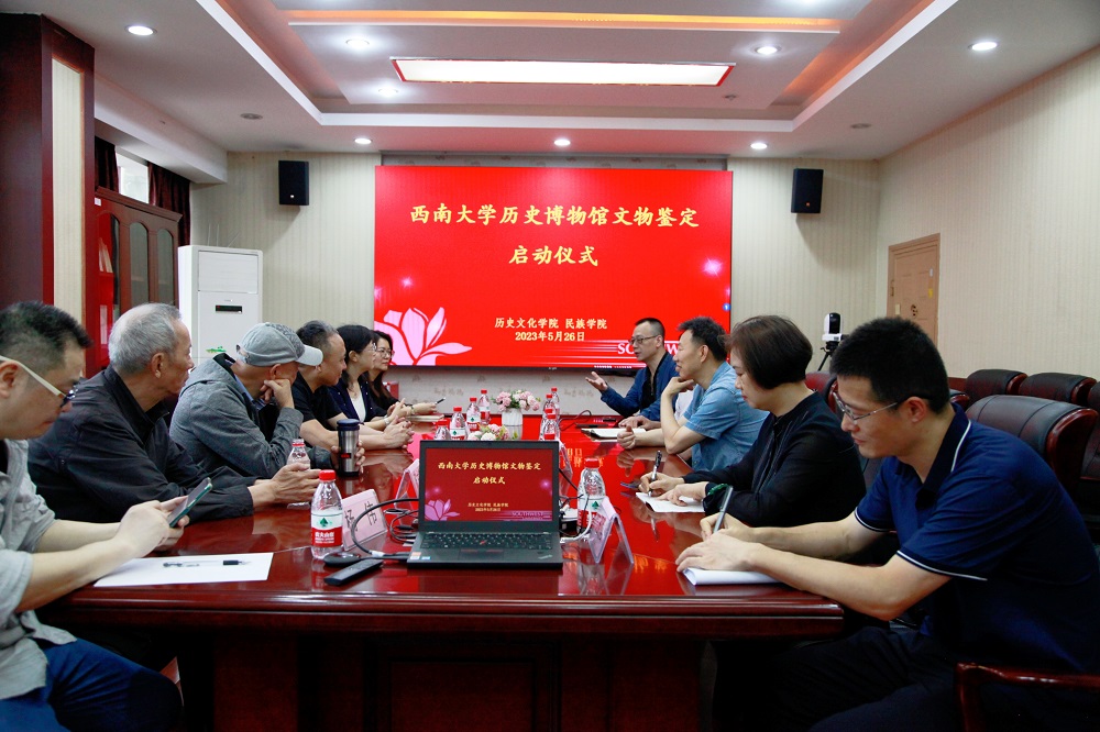 为了推进beat365英国官网历史博物馆建设,5月26日上午,学校首批历史文物鉴定移交启动仪式在历史文化学院民族学院举行。重庆市文化和旅游发展委员会博物馆处组织了三位重庆市文物鉴定专家,对学校的瓷器类文物进行了鉴定。重庆市文化和旅游发展委员会博物馆处领导出席启动仪式并全程参与鉴定工作,beat365英国官网历史文化学院 民族学院,财务部,博物馆相关领导和工作人员参加启动仪式。