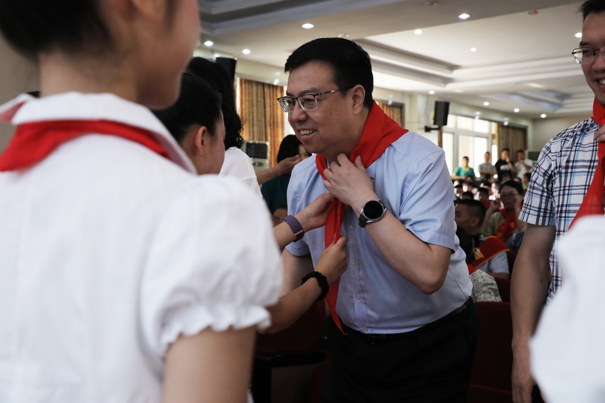 王进军致辞,向孩子们致以节日亲切的问候和美好的祝愿,勉励附小学子励志奋斗、茁壮成长。